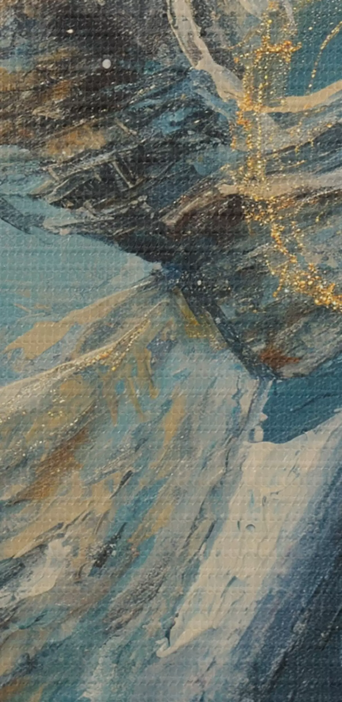 Selle lõuendi peenike niidipunus meenutab professionaalse kunstniku lõuendi pinda.