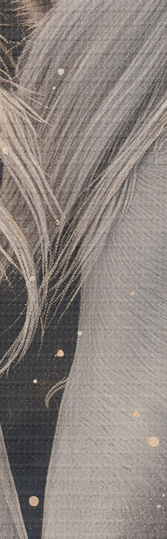 Selle lõuendi peenike niidipunus meenutab professionaalse kunstniku lõuendi pinda.