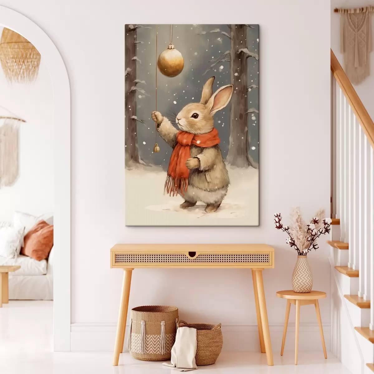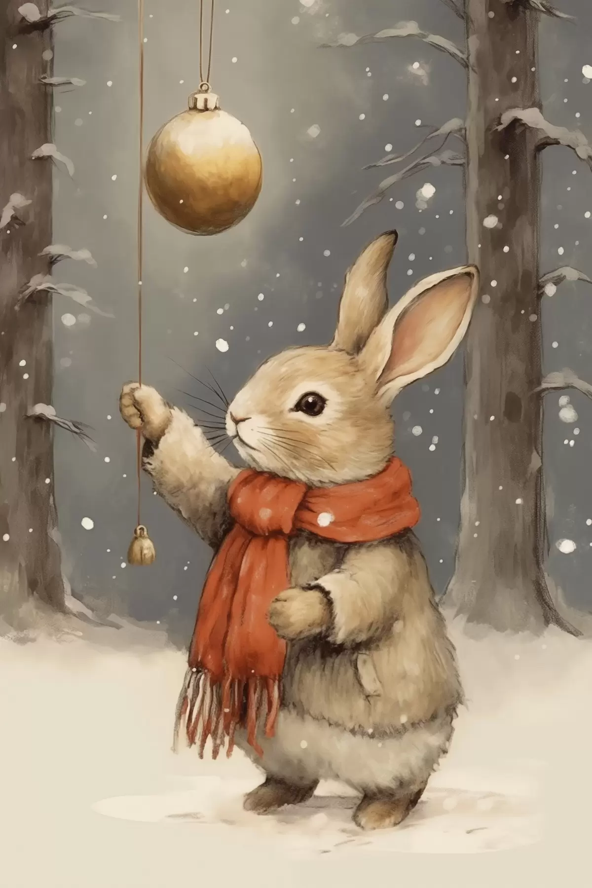 Maalid Talvine jänes salliga ja jõulupuu kaunistusega Nr s46619