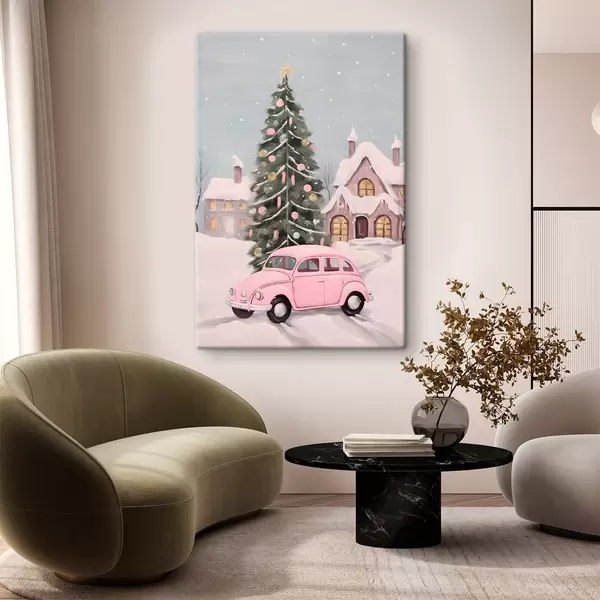 Maalid Roosa auto ja kaunistatud jõulupuu maja ees Nr s46621