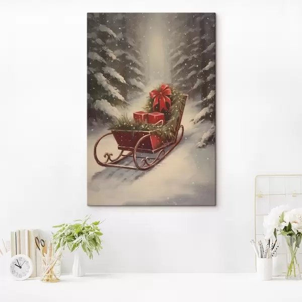 Maalid Jõulud kelk kingitustega lumises metsas Nr s46630