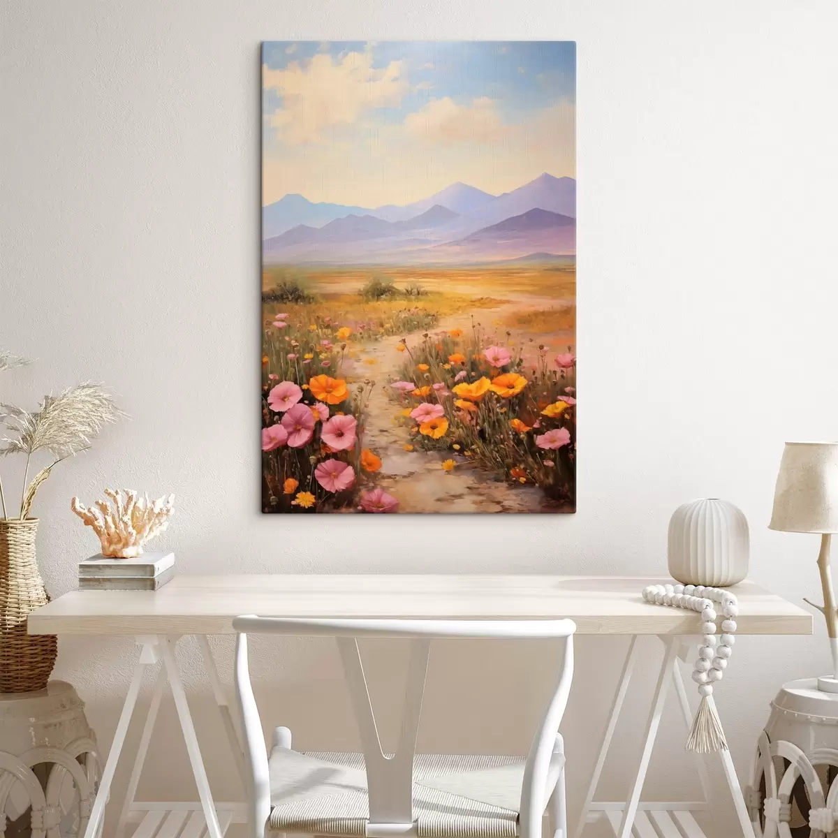 Maalid Maastik, värviliste lillede väli mägedega taustal, pehmed ja pastelsed värvid Nr s46686