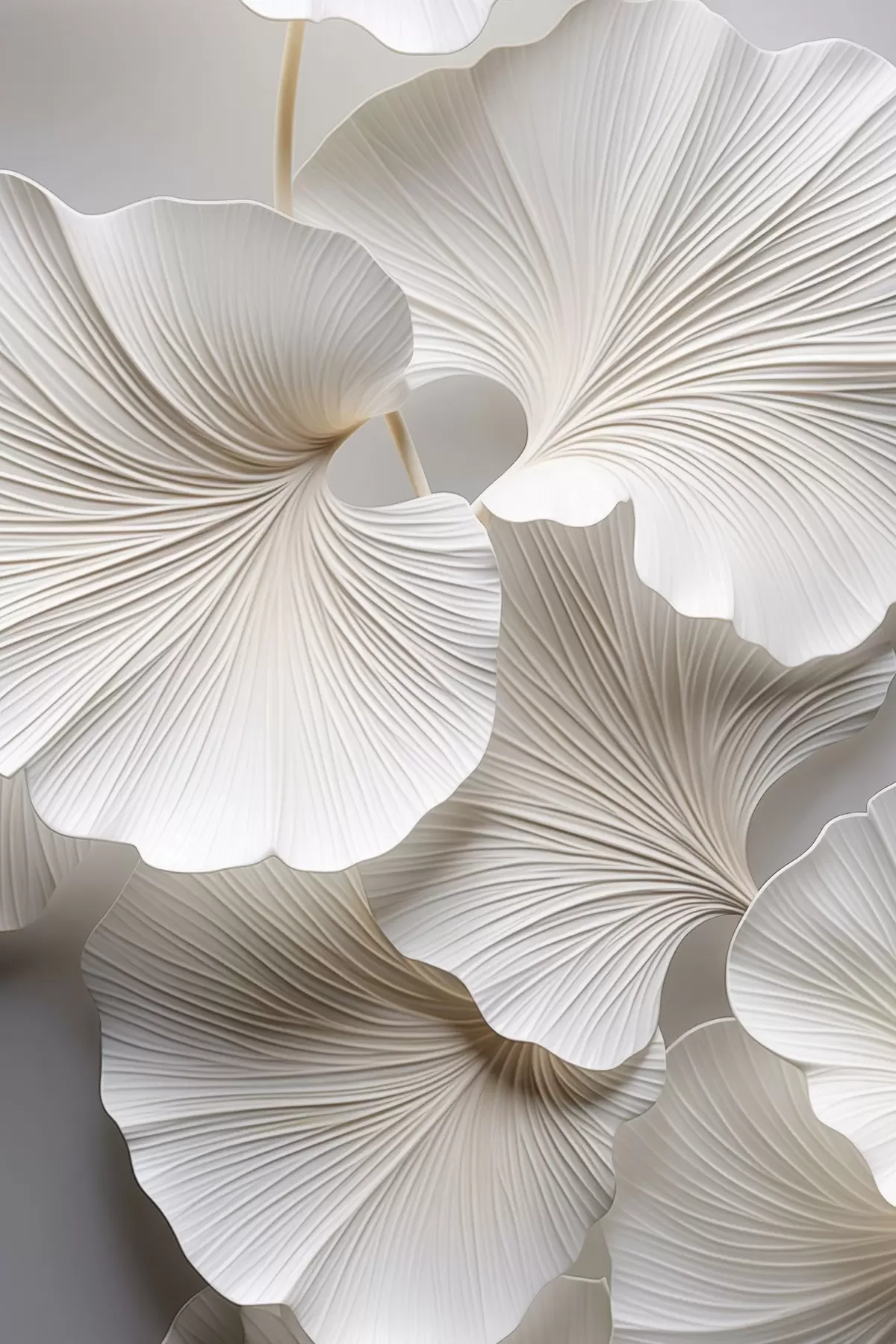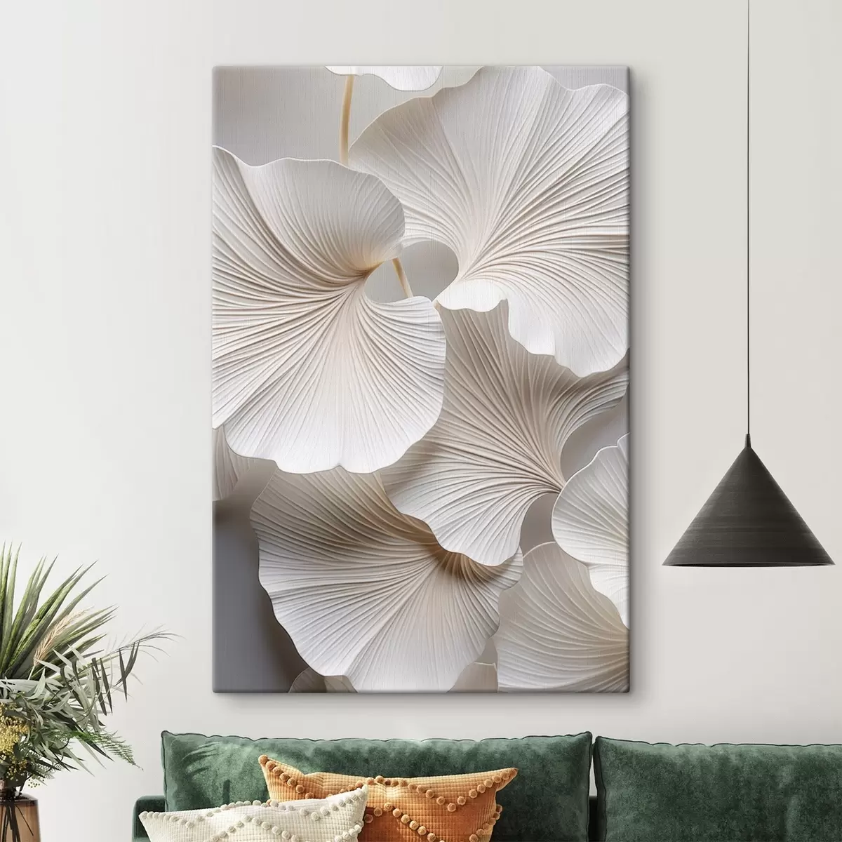 Maalid Valged ginkgo biloba lehed detailse veenistusega, pehme valgustus, tekstuuriga elegantne ja minimalistlik disain Nr s46705