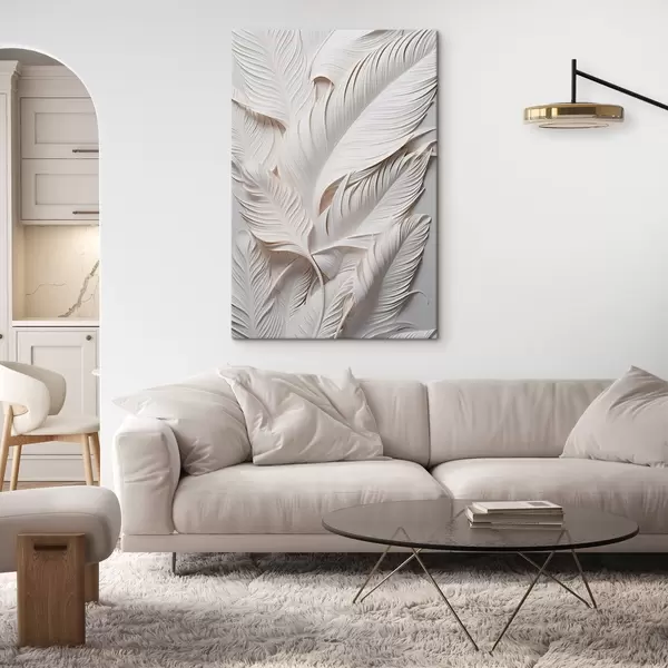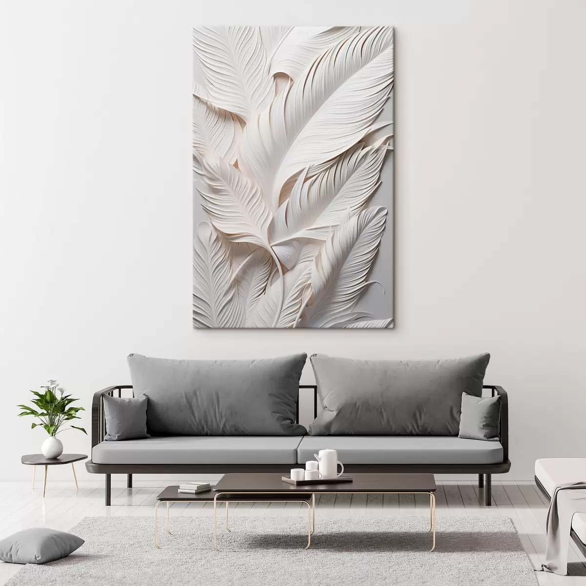 Maalid Valged lehed keeruliste detailidega, mis loovad tekstuurse ja kihilise efekti, minimalistlik kunst Nr s46706