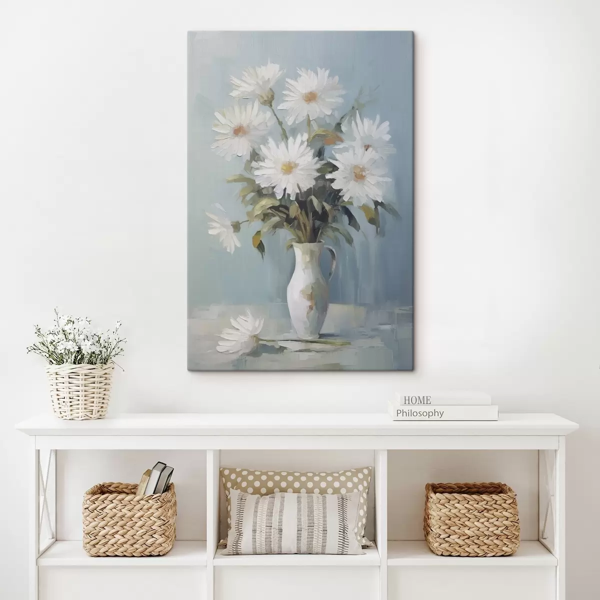 Maali võib riputada kohe pärast selle kättesaamist. Maal on pingutatud 2 cm laiusele puidust kandikule.