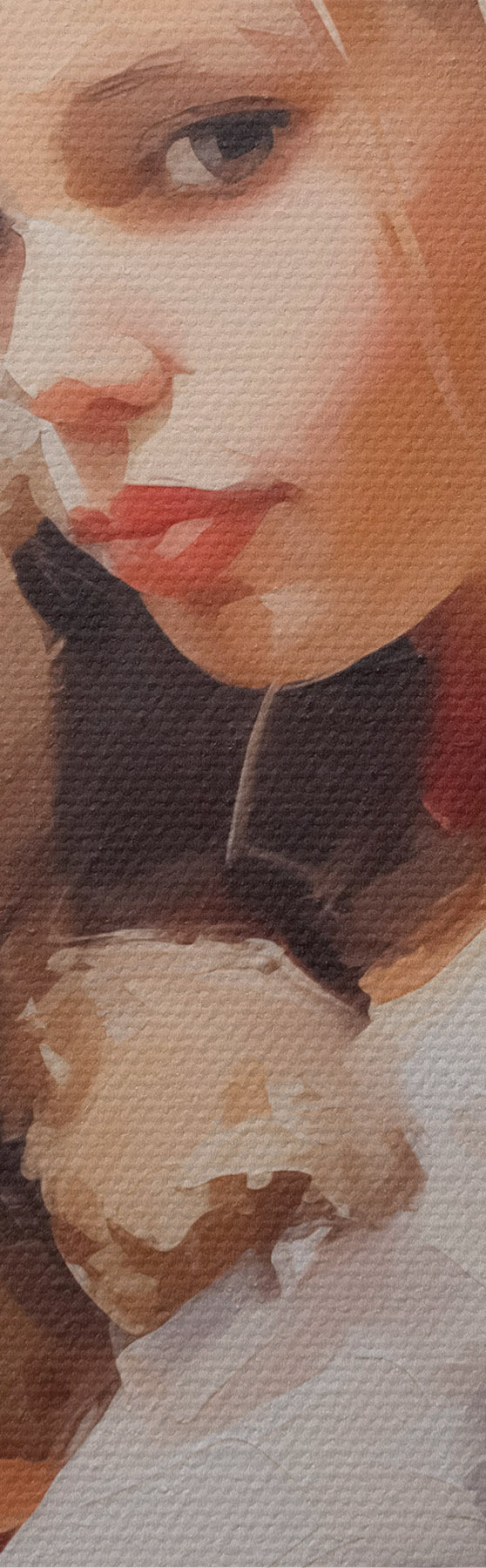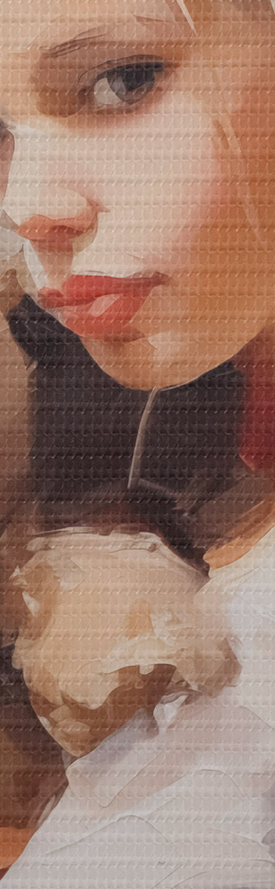 Selle lõuendi peenike niidipunus meenutab professionaalse kunstniku lõuendi pinda.