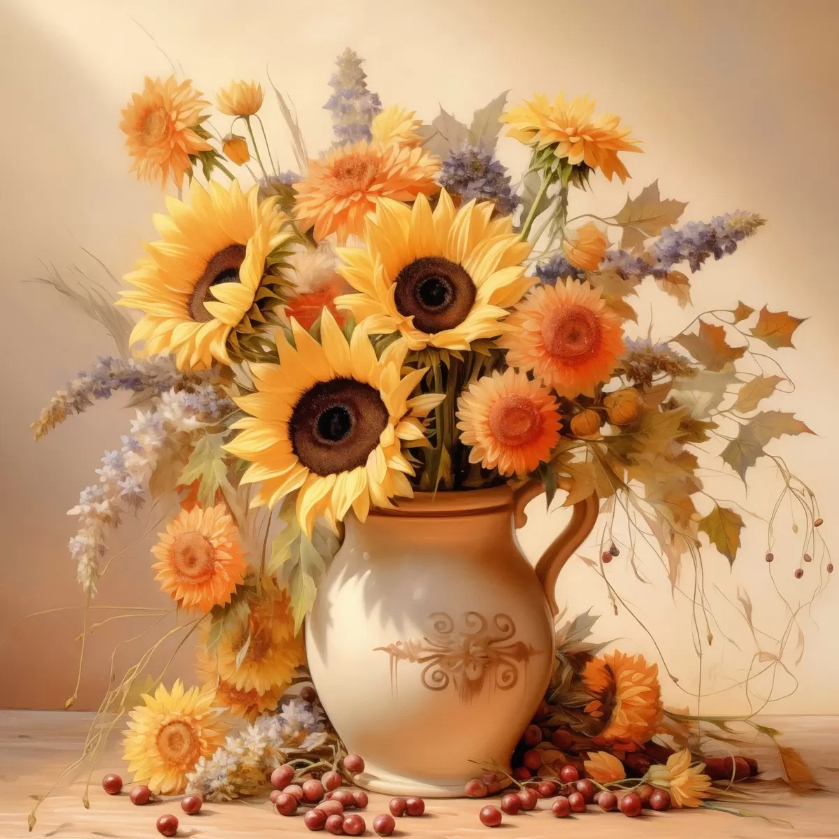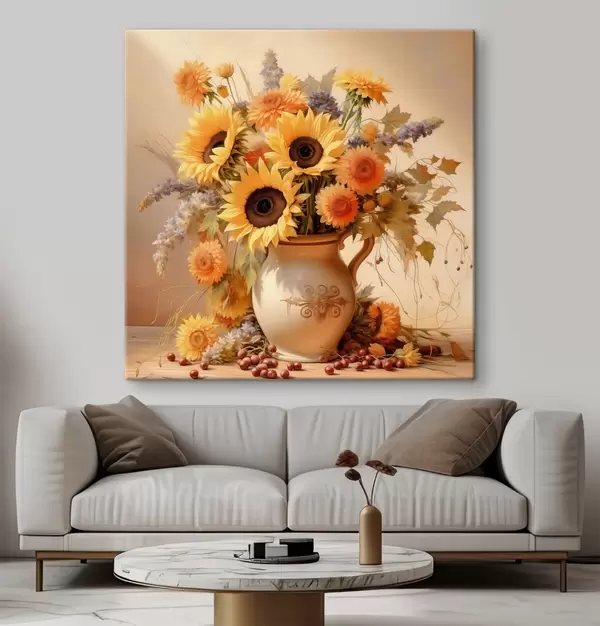 Maalid Sügisene kompositsioon, lilled vaasis Nr s46774