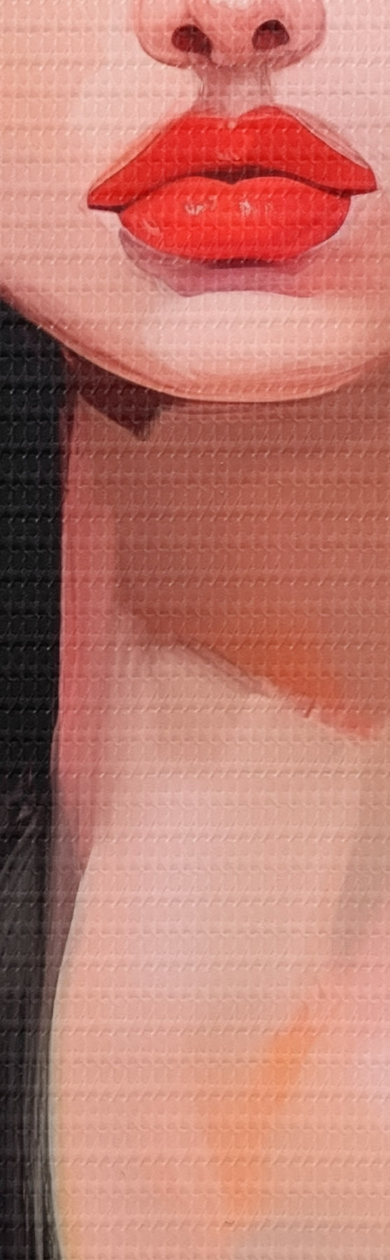 Selle lõuendi peenike niidipunus meenutab professionaalse kunstniku lõuendi pinda.