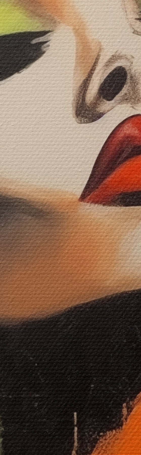 Selle lõuendi peenike niidipunus meenutab professionaalse kunstniku lõuendi pinda.