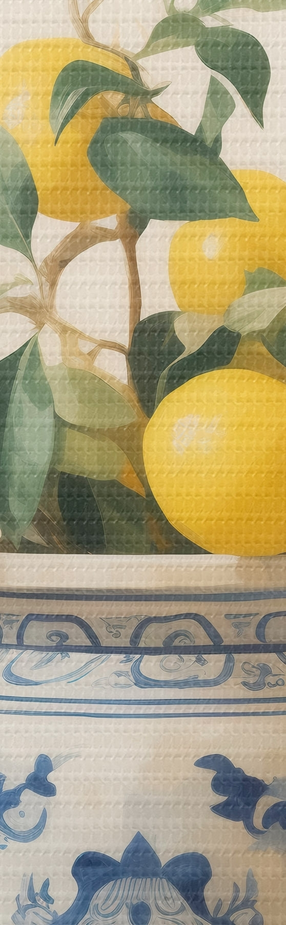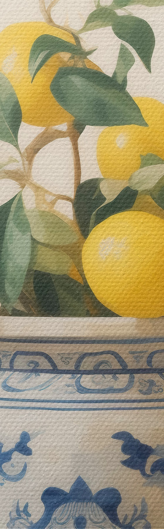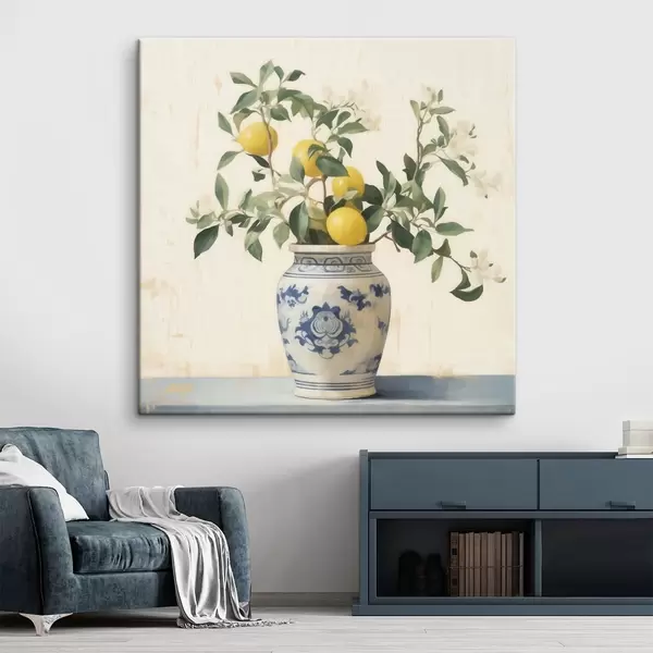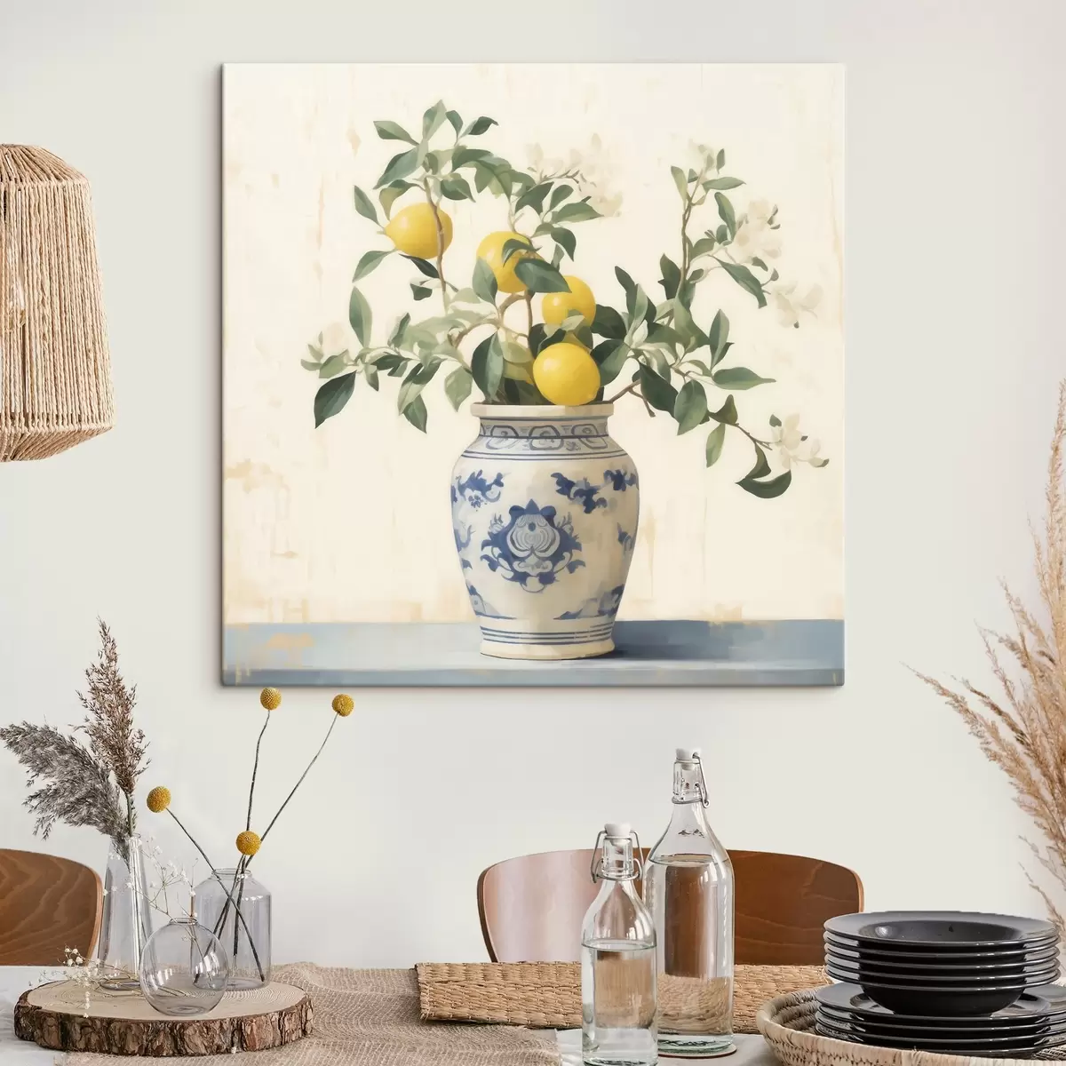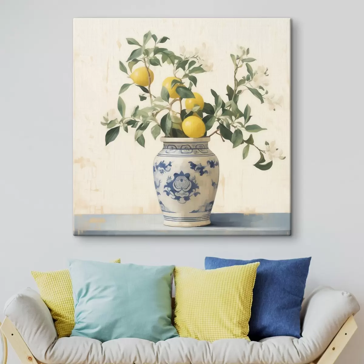Maalid Sidrunid sinivalges keraamilises vaasis õlimaalistiilis Nr s46924