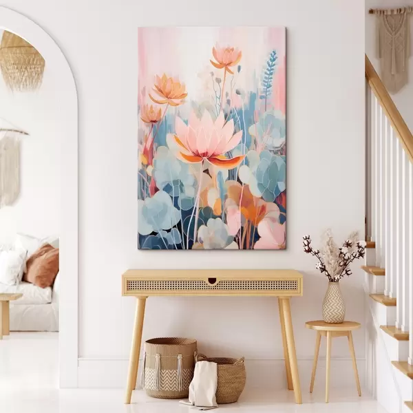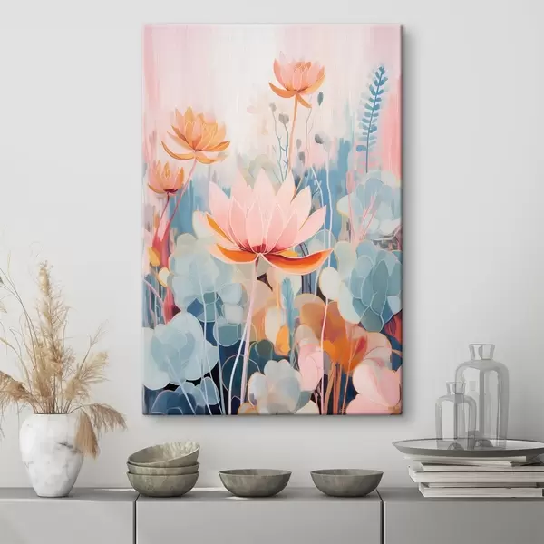 Maalid Lootoslilled ja dekoratiivsed lehed roosa-sinises värvipalettis Nr s46929