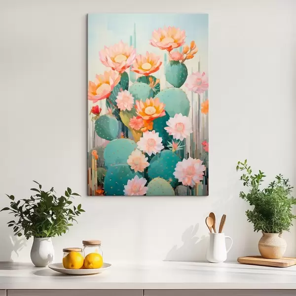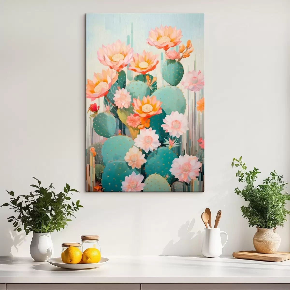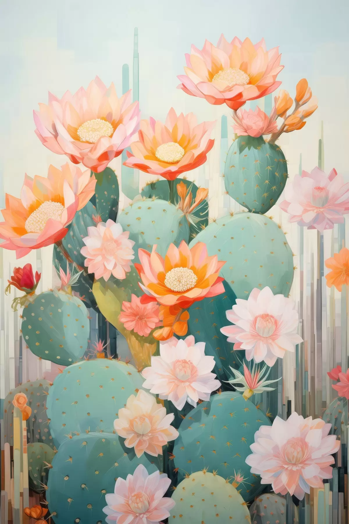 Maalid Kaktuste lilleaed pehmes pastelltoonides illustratsioonistiilis Nr s46935