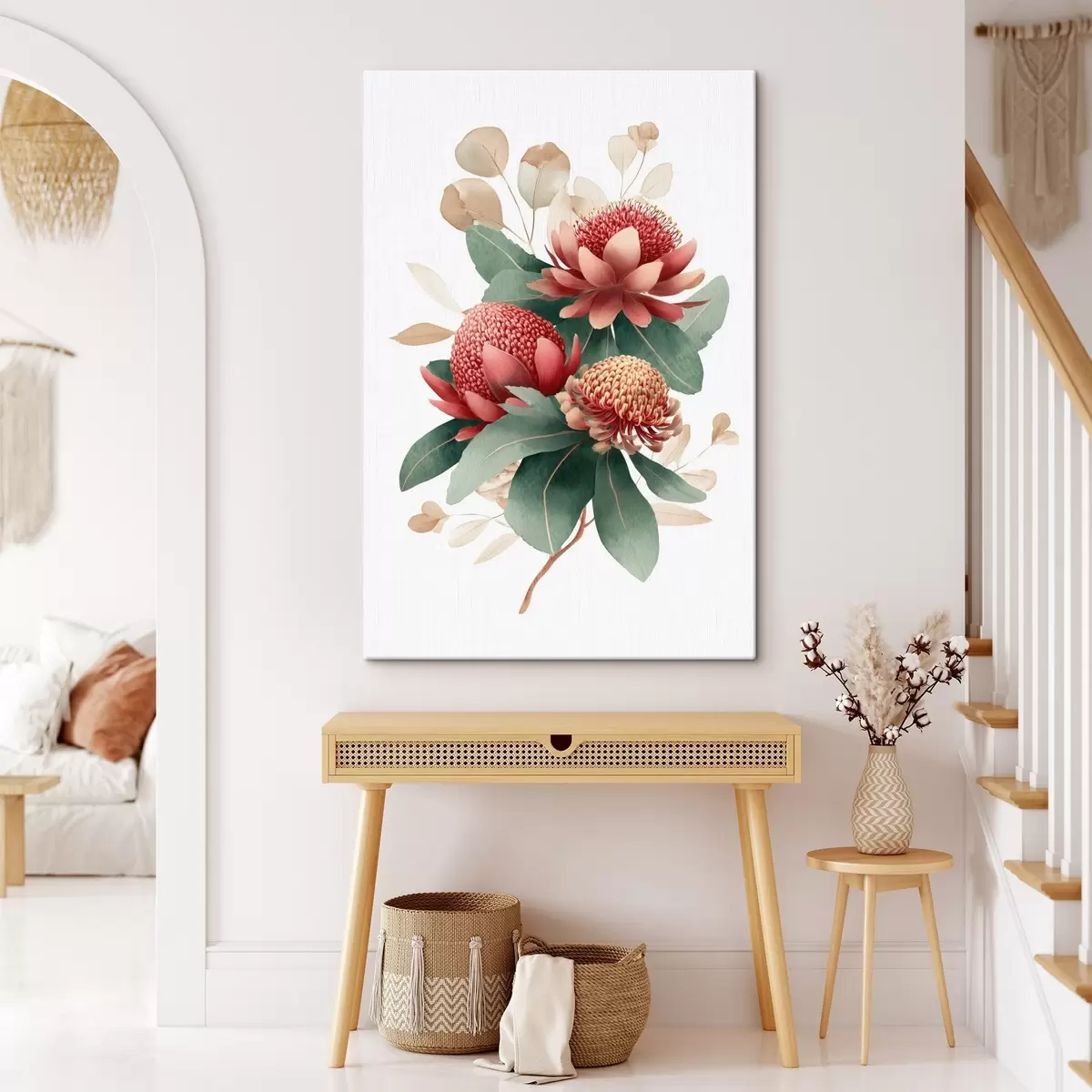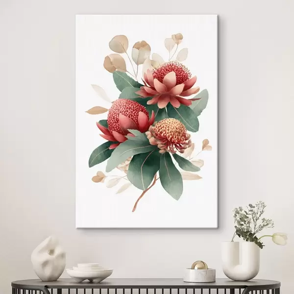 Maalid Lilleseade suurte proteadega ja eukalüptusega kaasaegses digitaalse maali illustratsioonistiilis Nr s46955