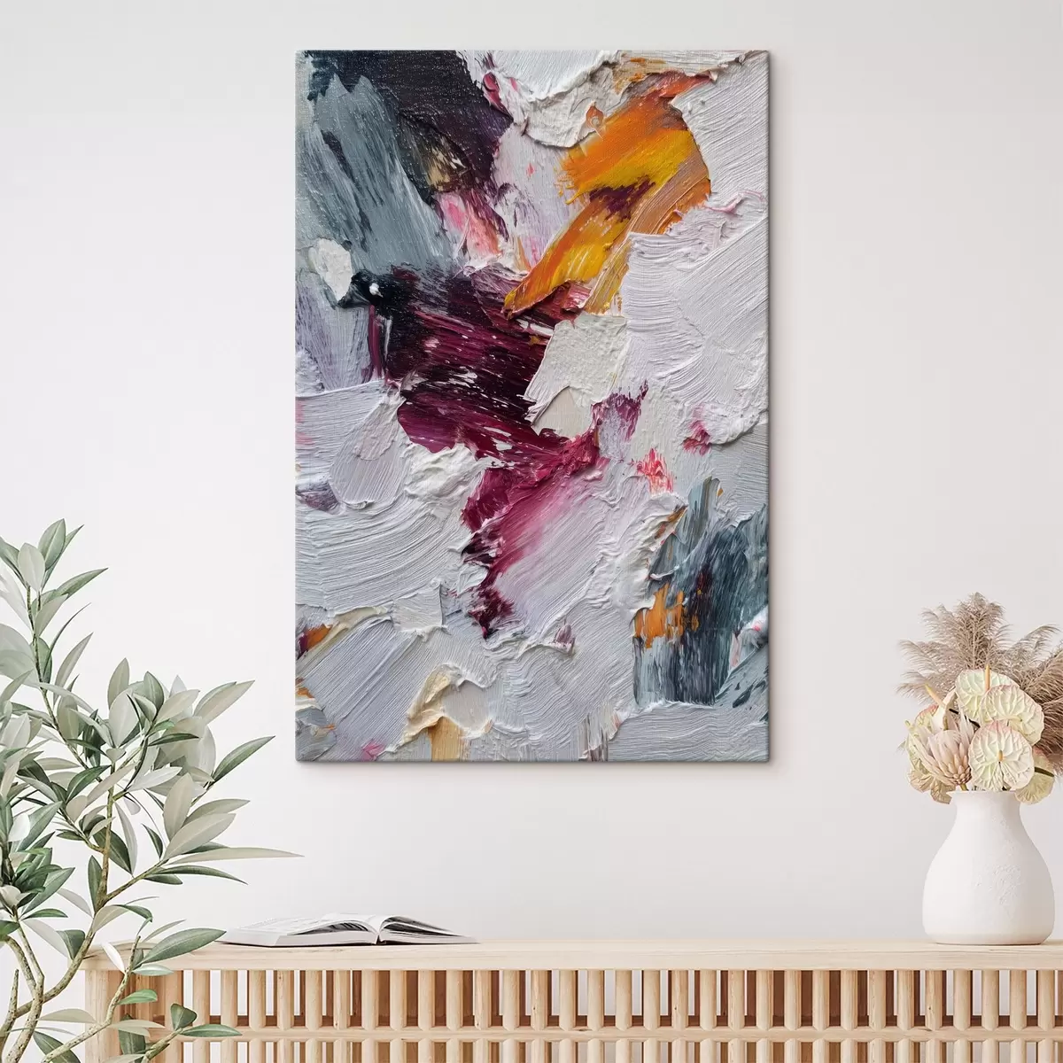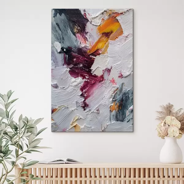 Maalid Abstraktne kompositsioon intensiivsete kirsi- ja apelsinitoonidega õlimaalistiilis Nr s46959