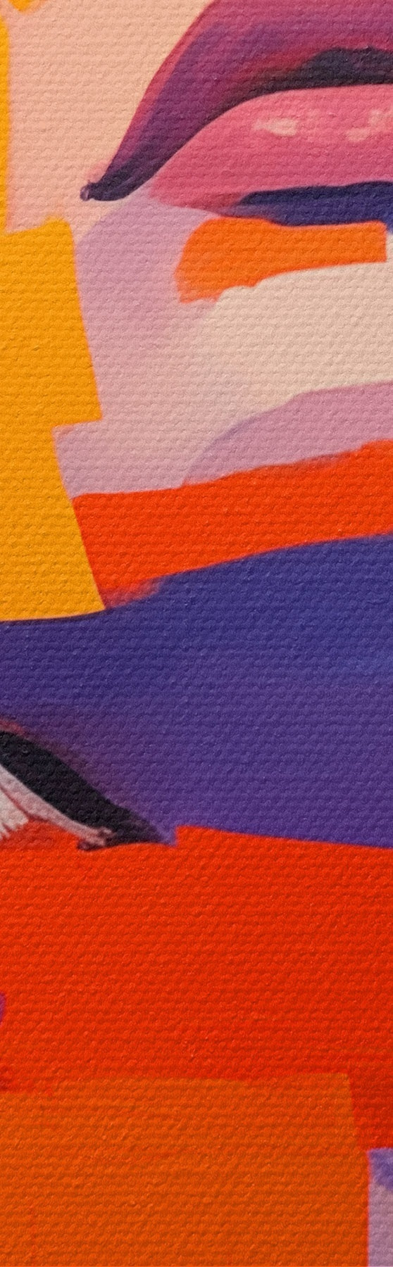 Selle lõuendi peenike niidipunus meenutab professionaalse kunstniku lõuendi pinda.