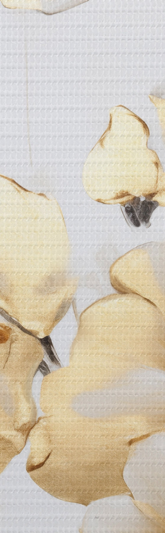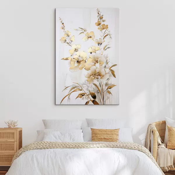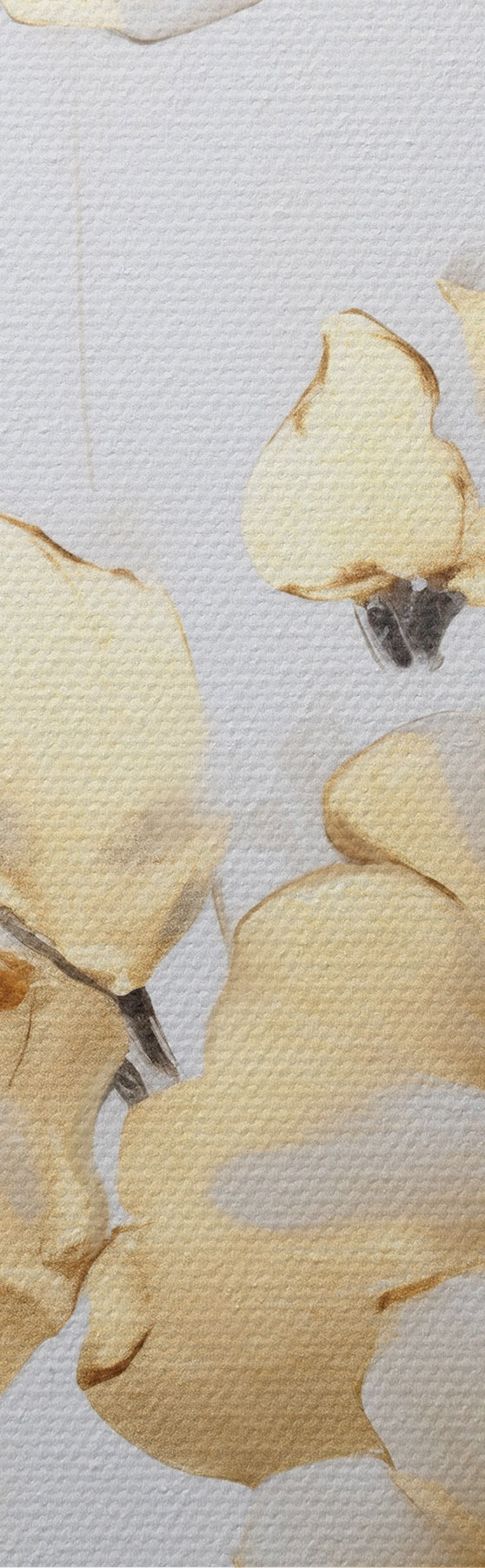 Maalid Tekstuuriga kollased õied ja lehed valgel taustal, delikaatsete pintslitõmmetega Nr s47016