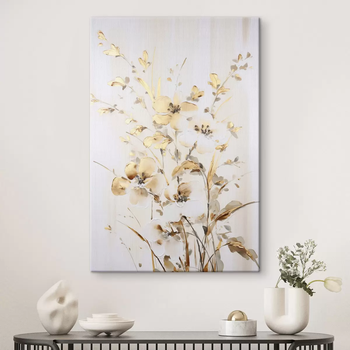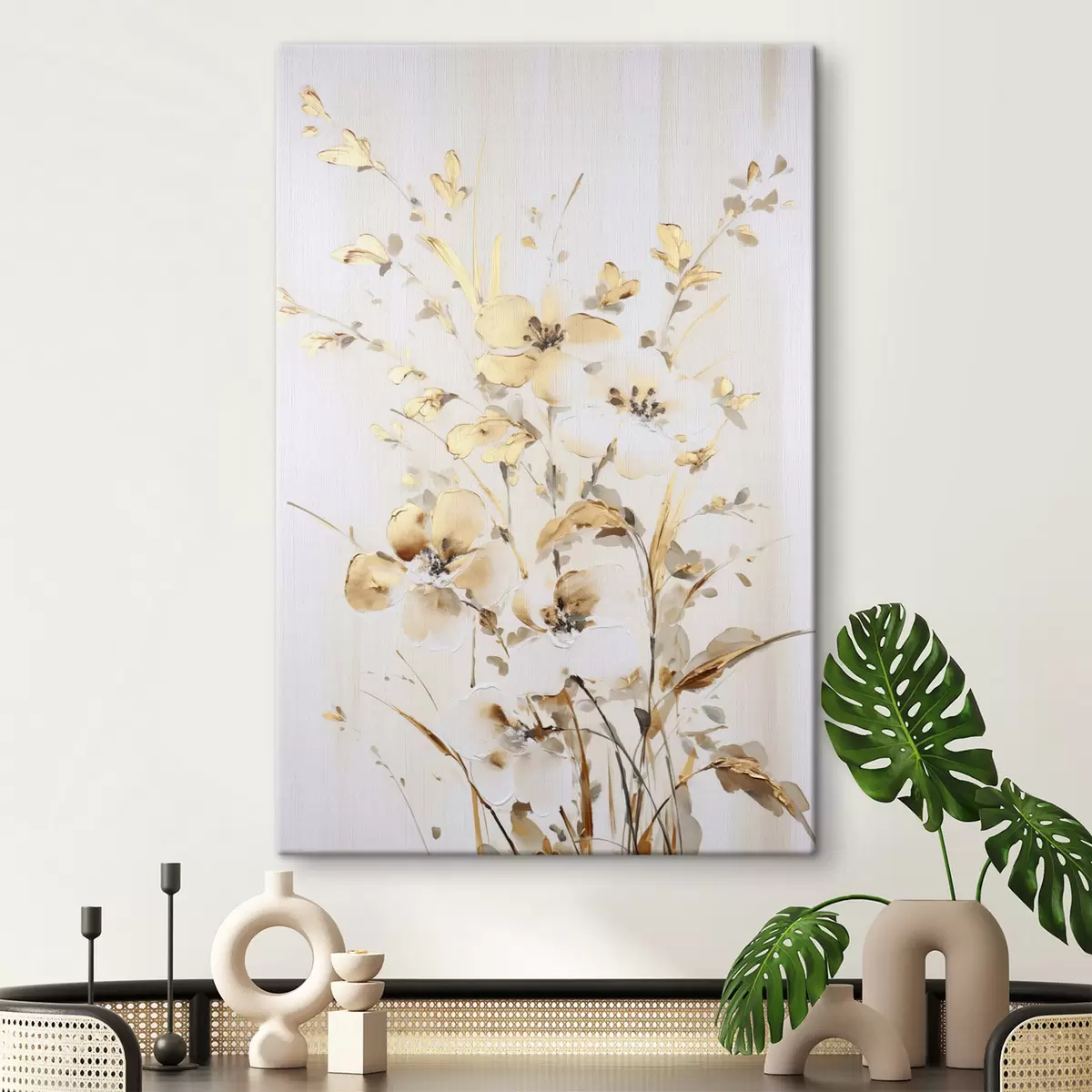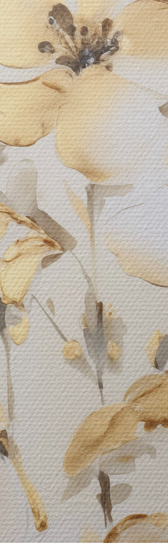 Maalid Tekstuuriga kollased õied ja lehed valgel taustal, delikaatsete pintslitõmmetega Nr s47017