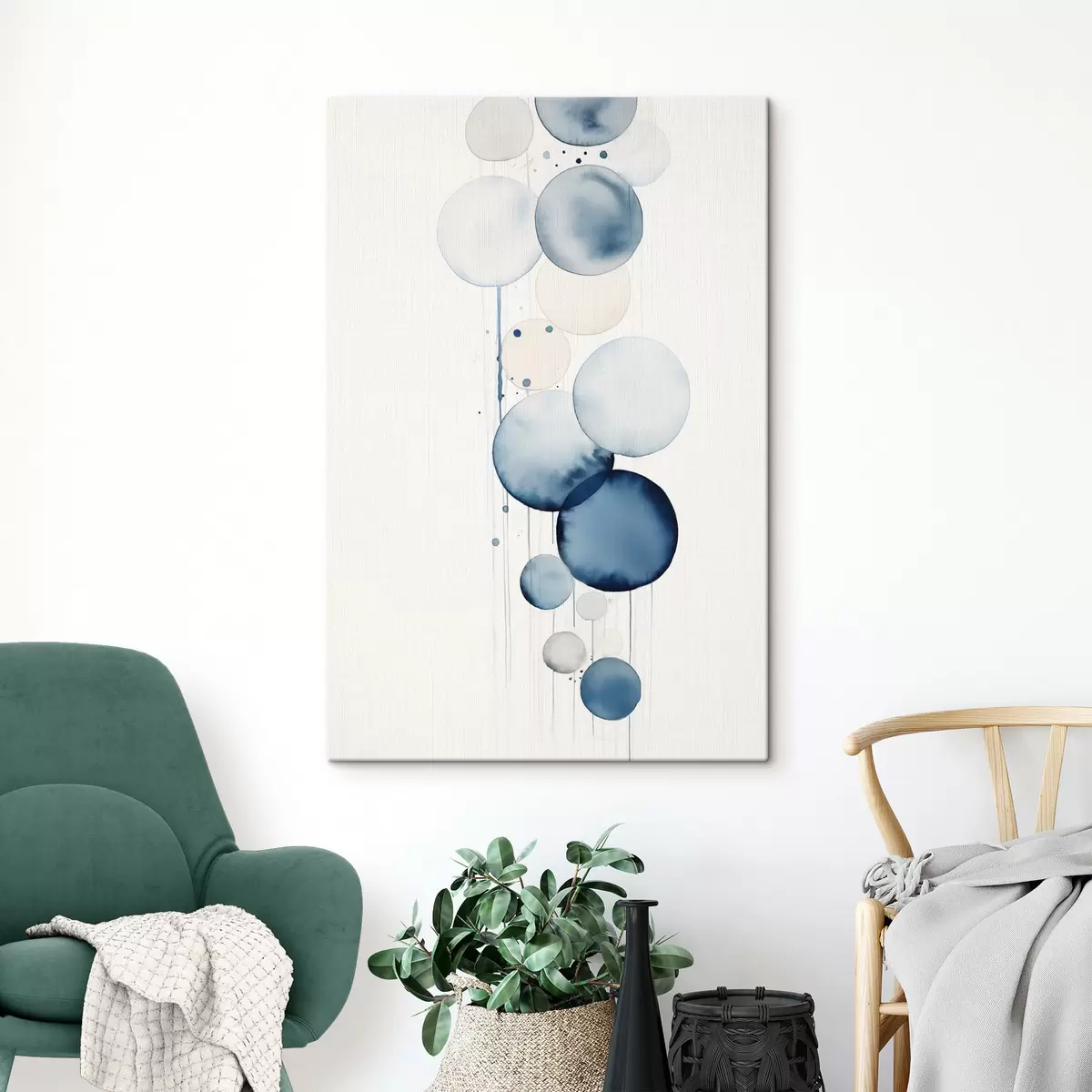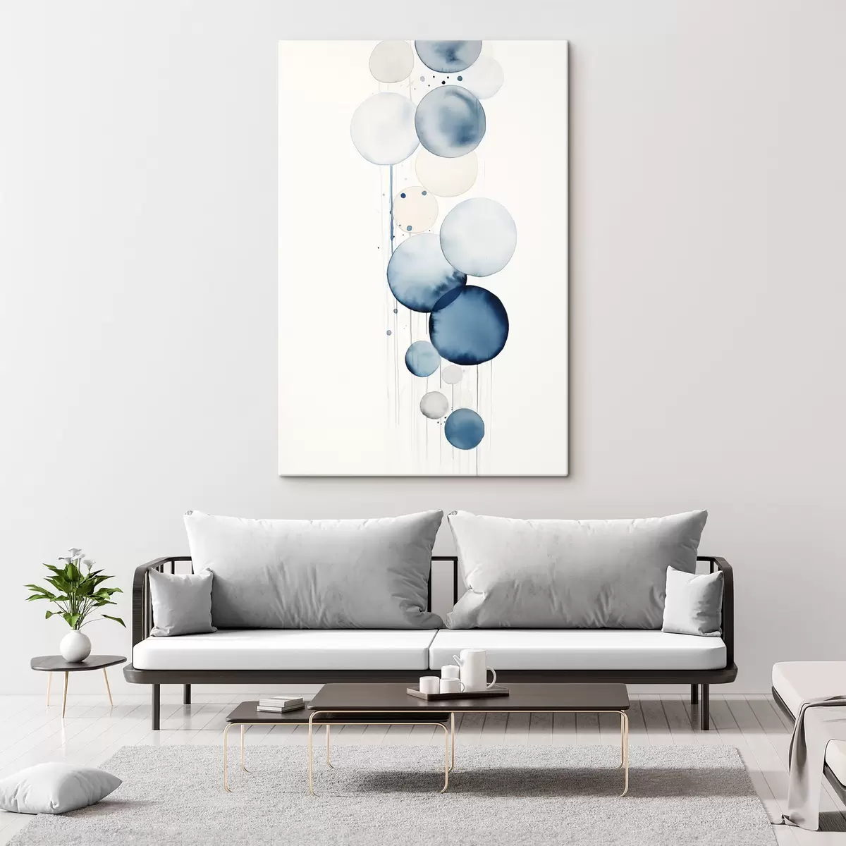 Maalid Abstraktsed tekstuuriga sinised ja valged akvarellringid erinevates suurustes valgel taustal Nr s47020