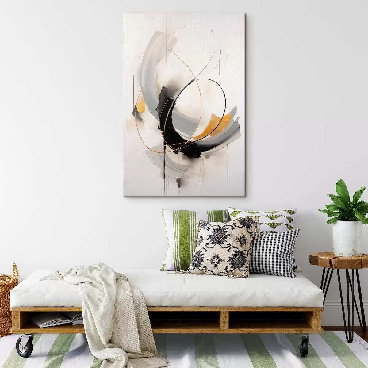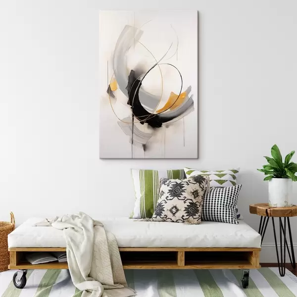 Maalid Abstraktne maal kollaste, mustade ja valgetega pintslitõmmetega, dünaamilised jooned Nr s47035