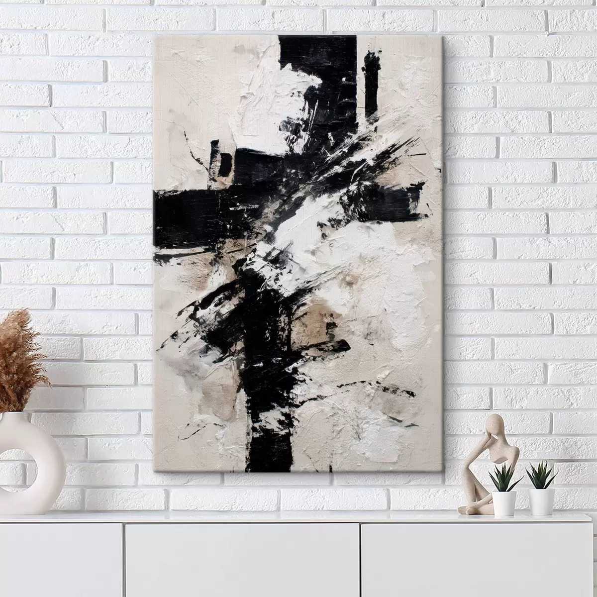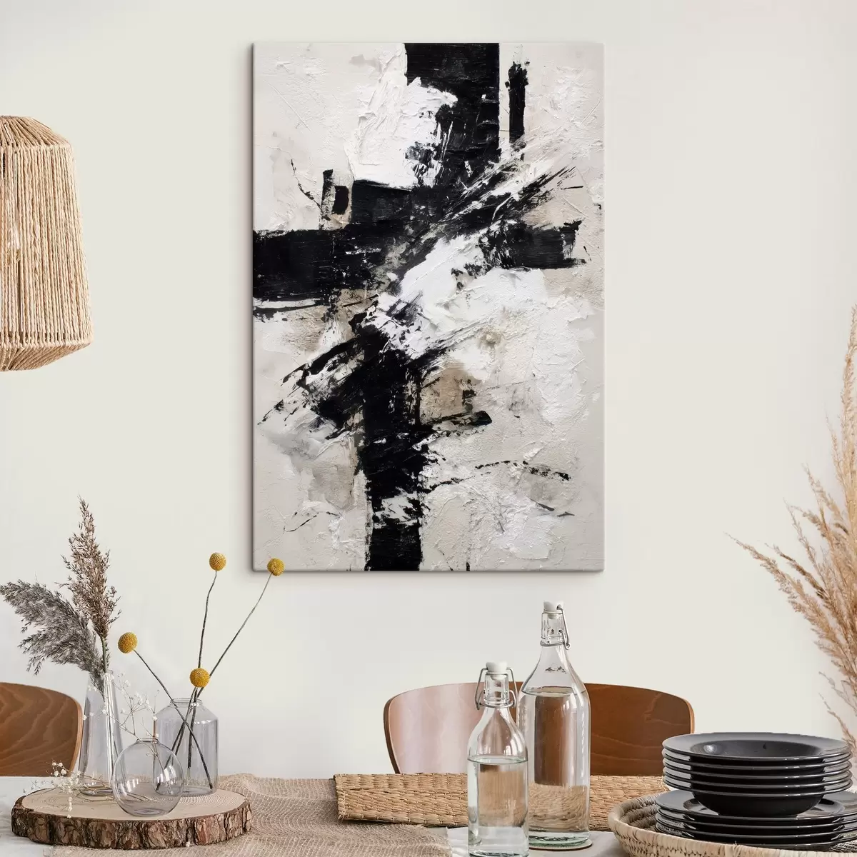 Maalid Kaasaegne abstraktne interjöör kaootiliste joonte ja ruumiliste pintslitõmmetega lõuendimaalistiilis Nr s47090