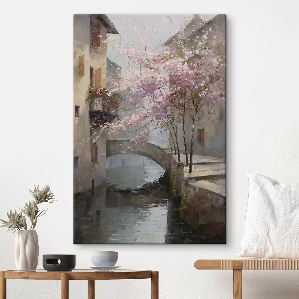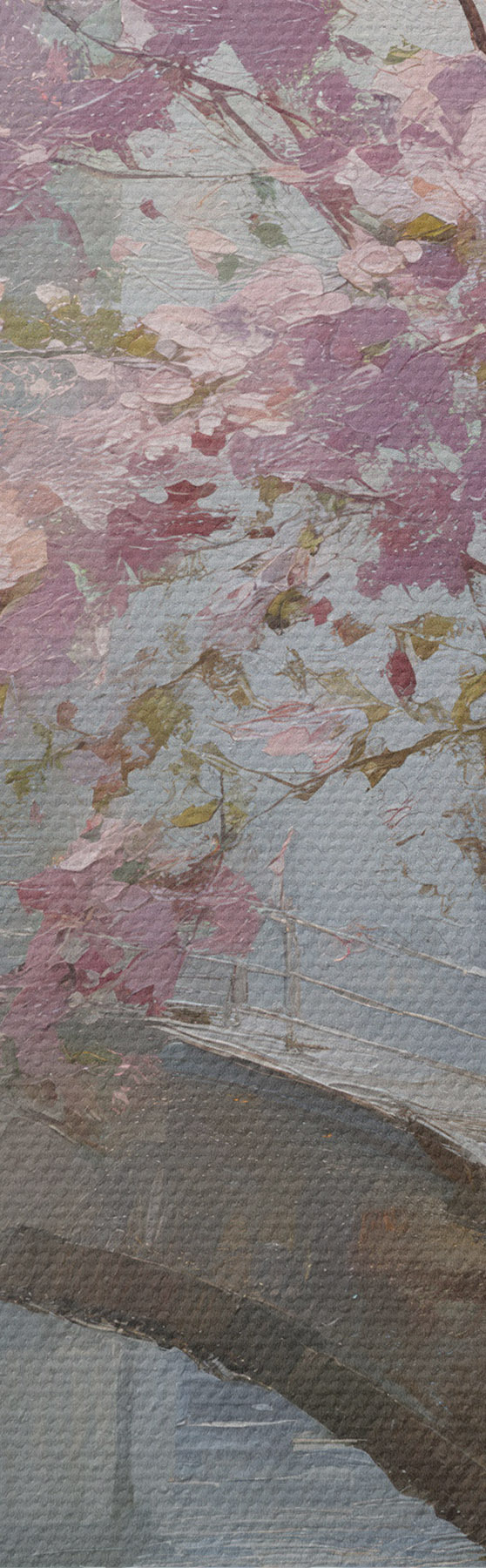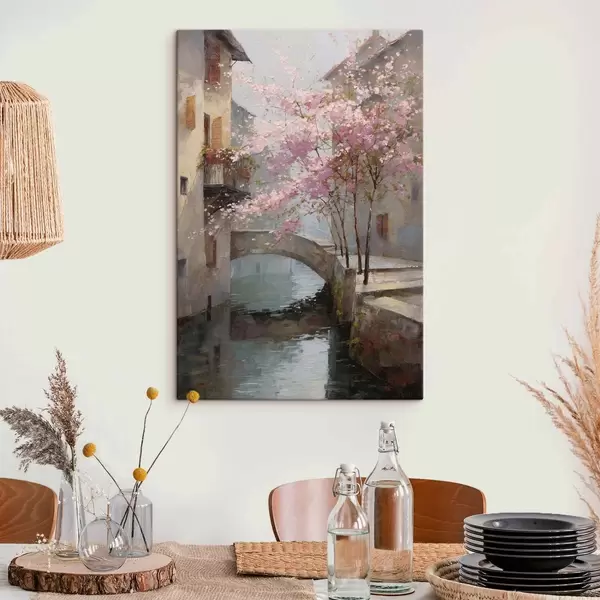 Maalid romantiline linnamaastik õitsva puuga õlimaalistiilis Nr s47127