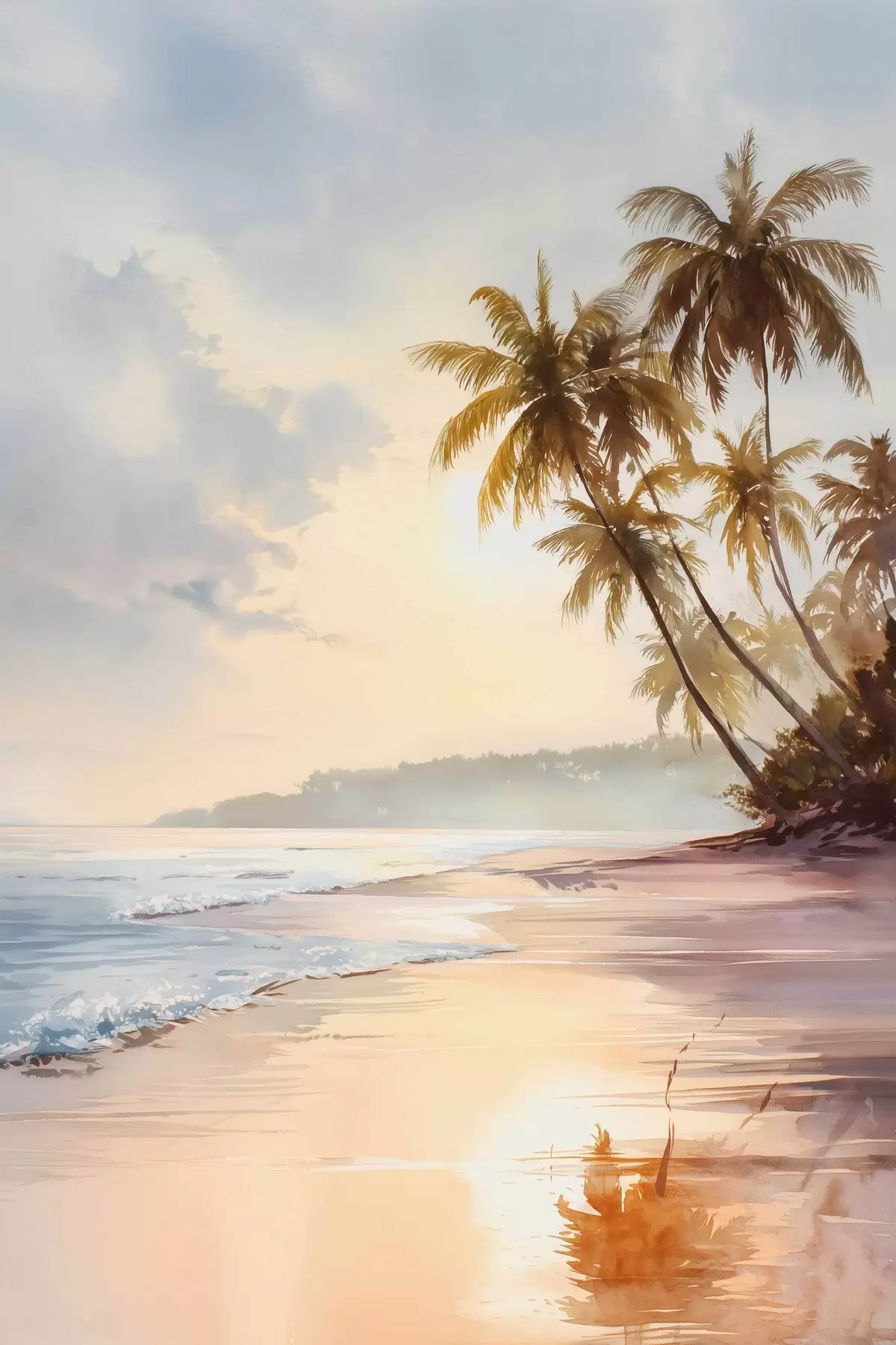 Maalid akvarellistiilis saare päikeseloojangurand Nr s47135