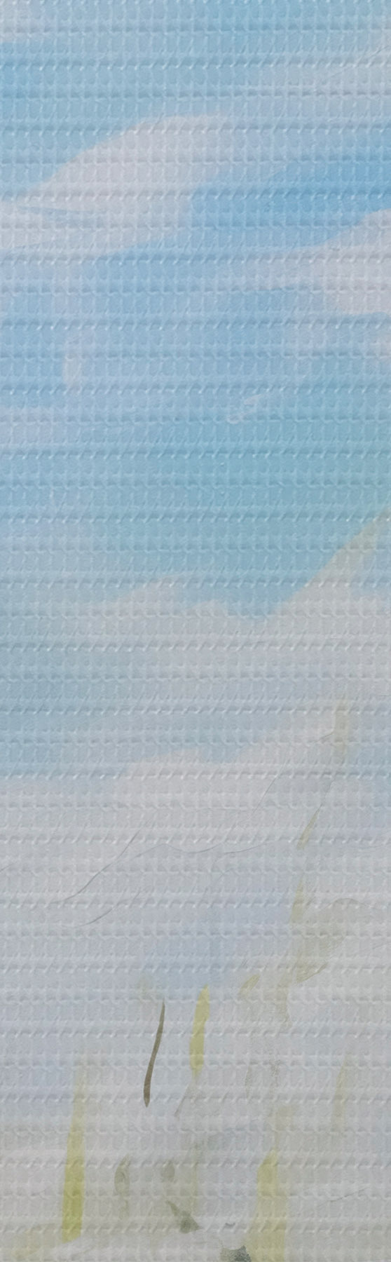 Selle lõuendi peenike niidipunus meenutab professionaalse kunstniku lõuendi pinda.