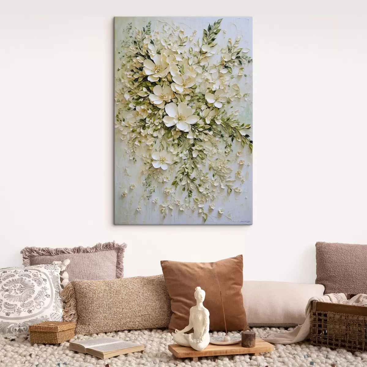 Maalid Suur kompositsioon kreemikast lilledest ja lehtedest Nr s47267