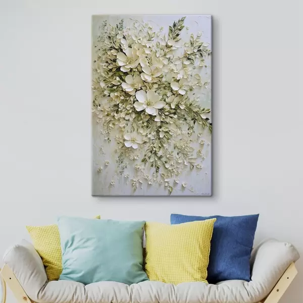 Maalid Suur kompositsioon kreemikast lilledest ja lehtedest Nr s47267