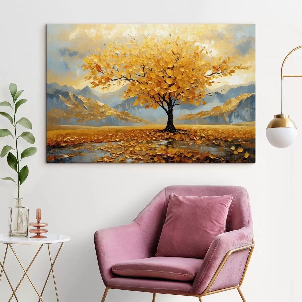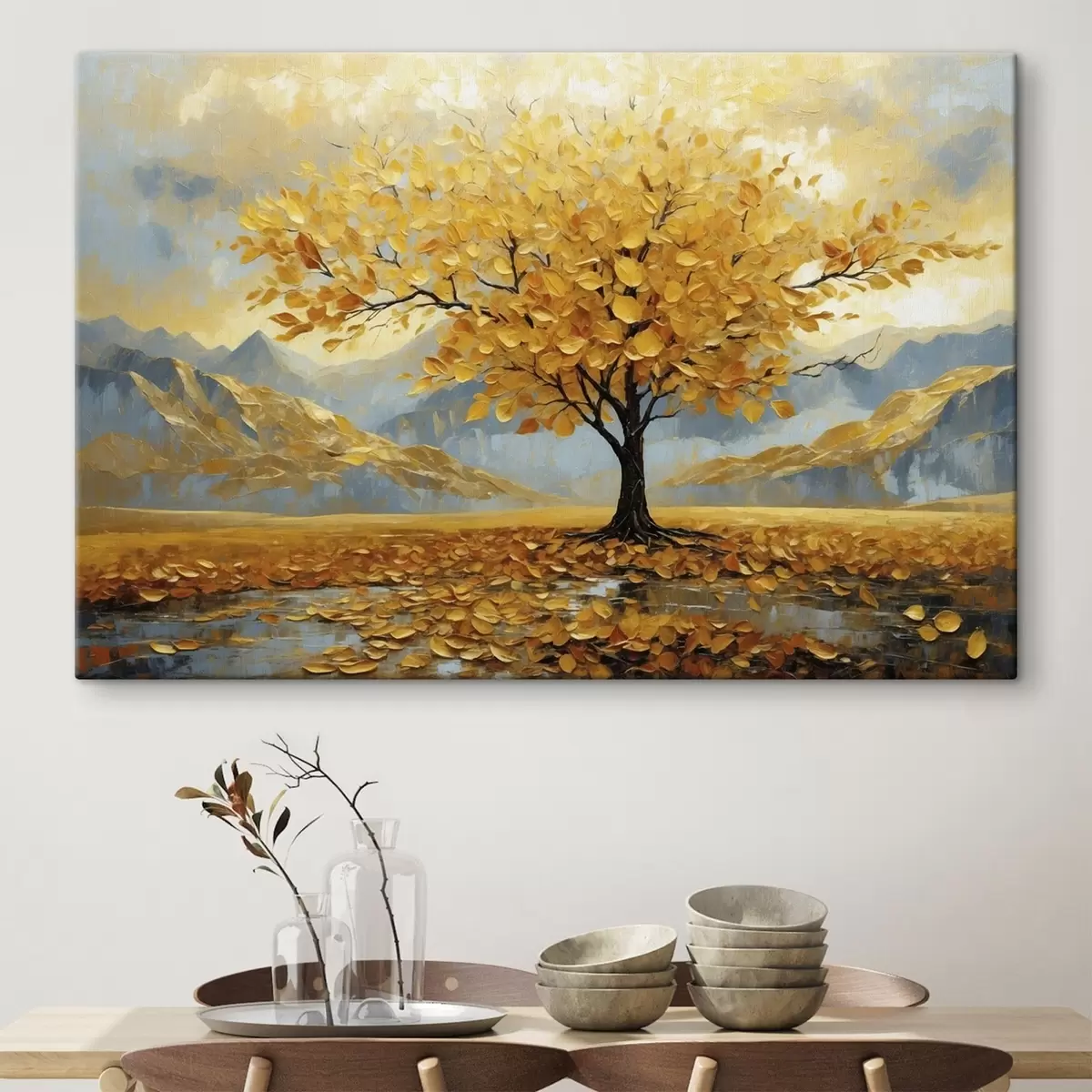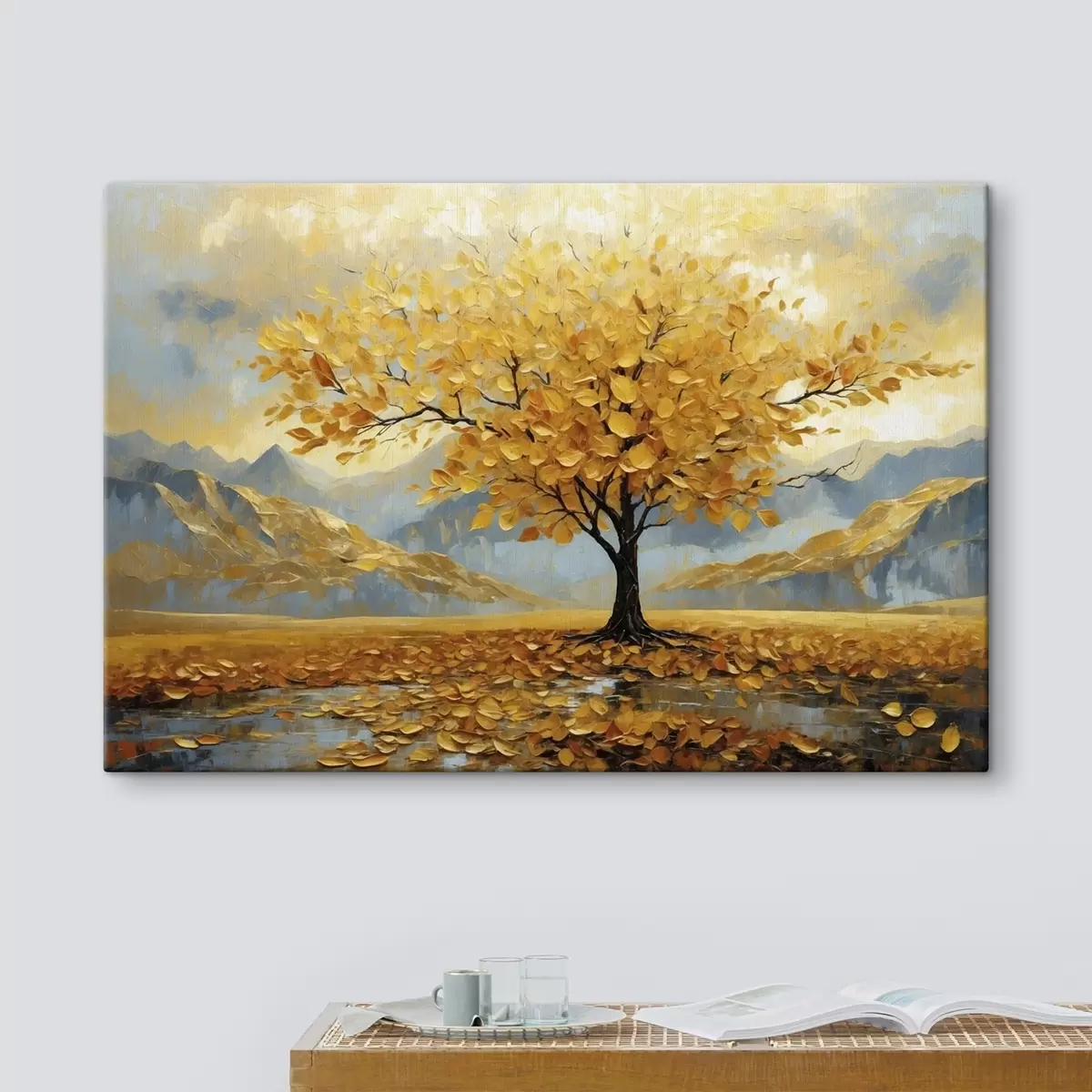 Maalid Kollaste lehtedega puu mägimaastikul Nr s47285