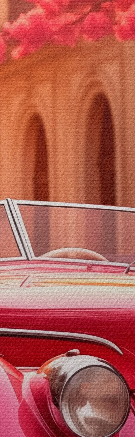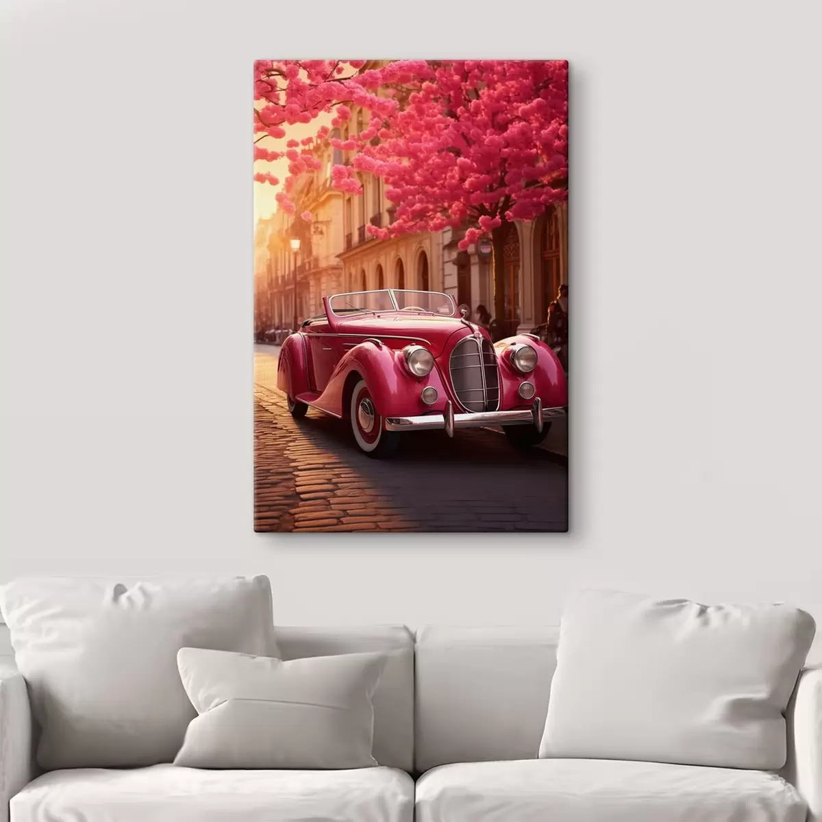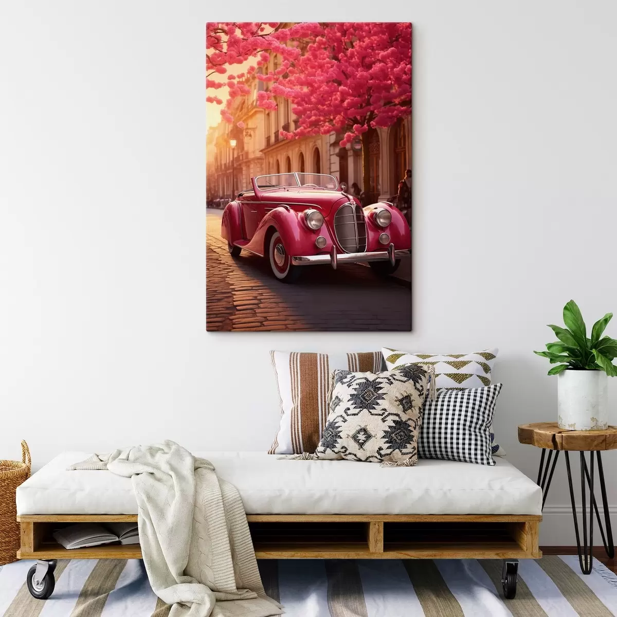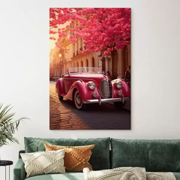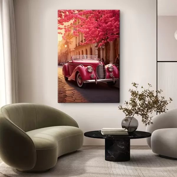 Maalid Roosa auto õitsvate puude all Nr s47295