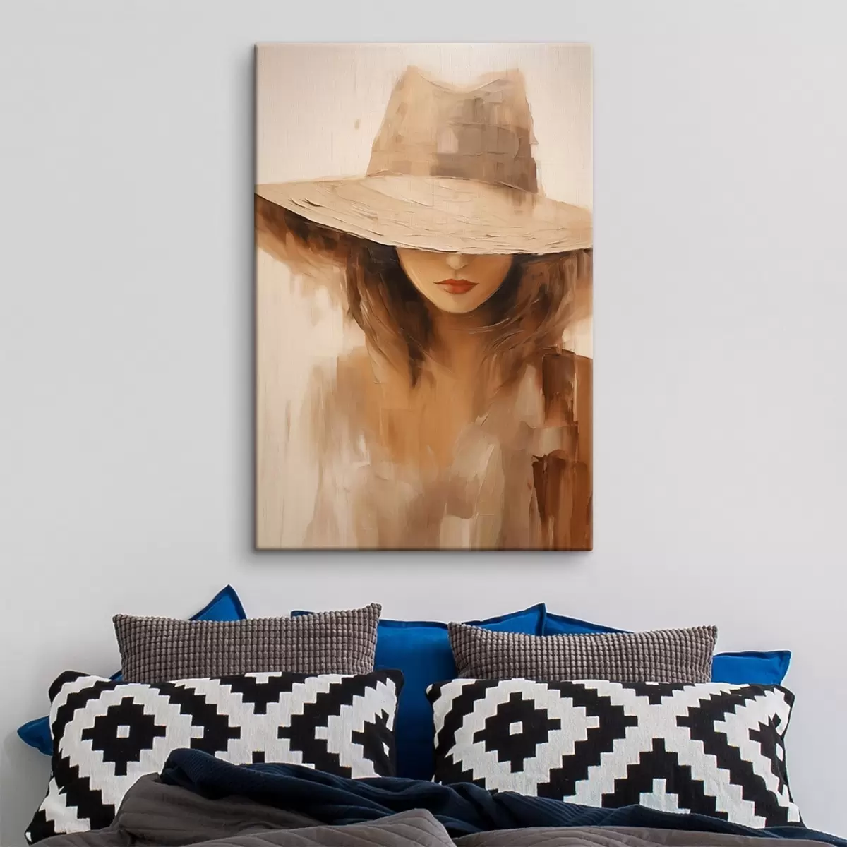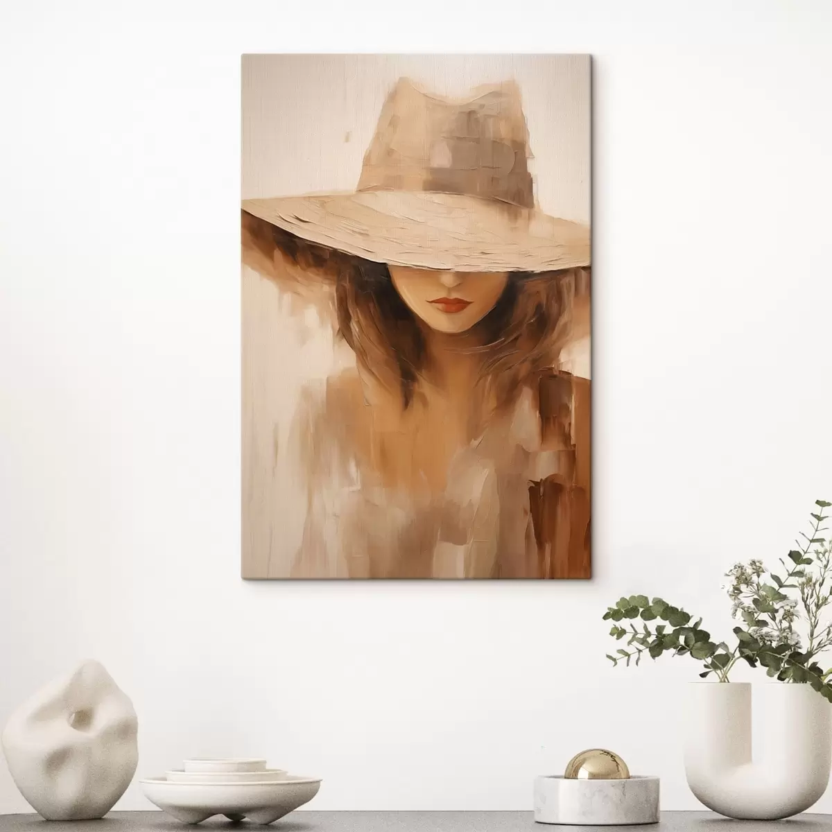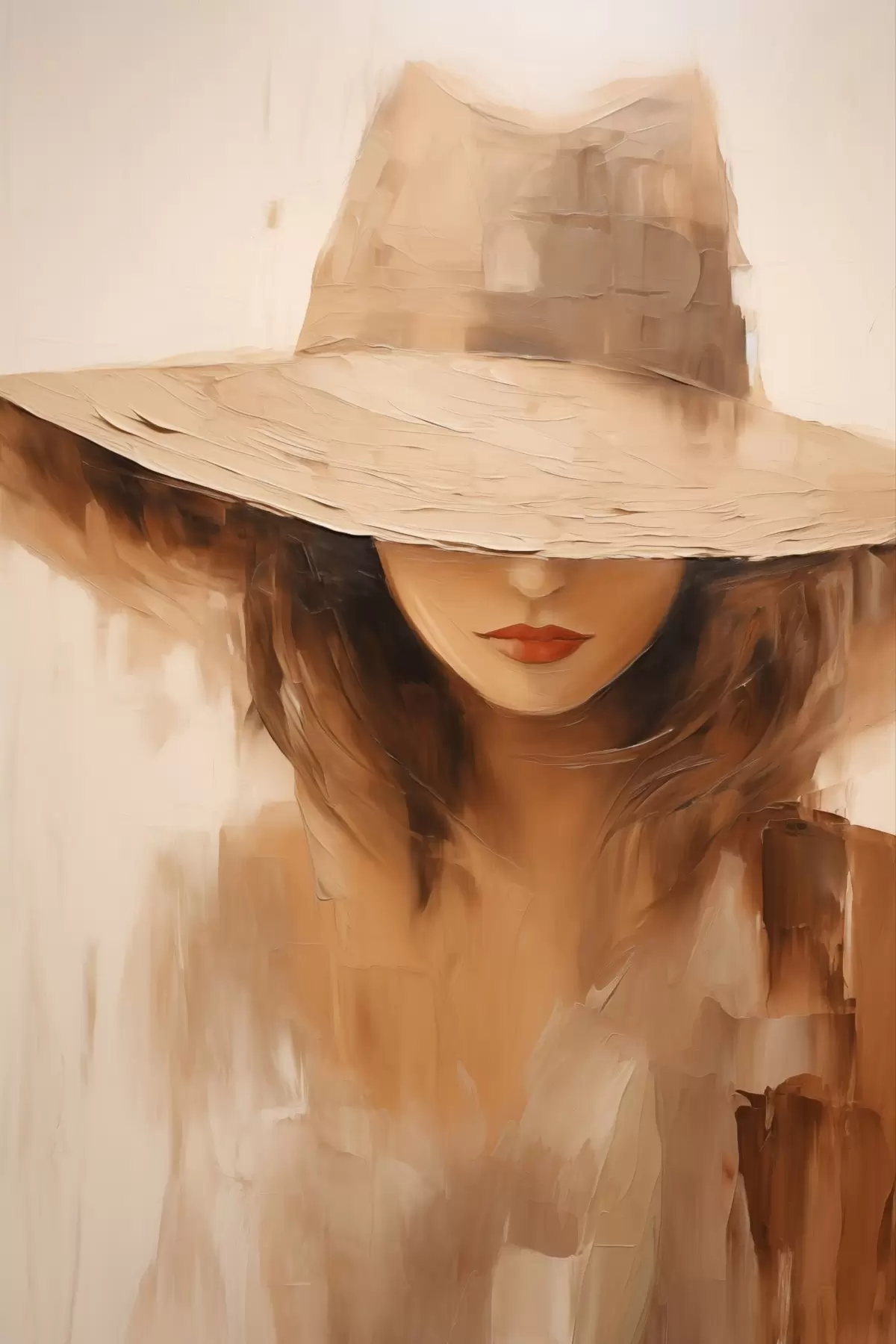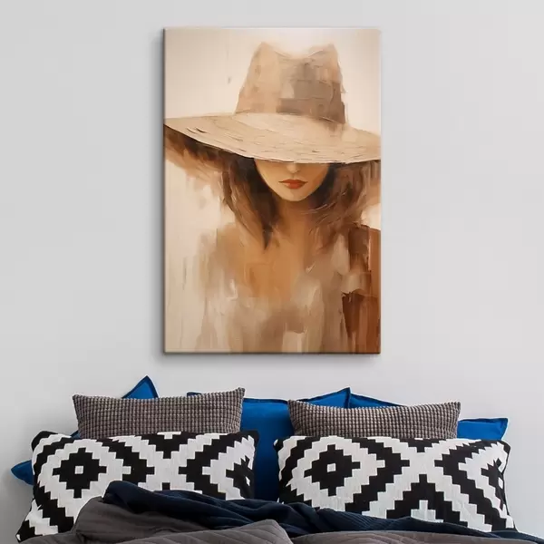 Maalid Naine mütsiga soojades abstraktsetes joontes Nr s47312