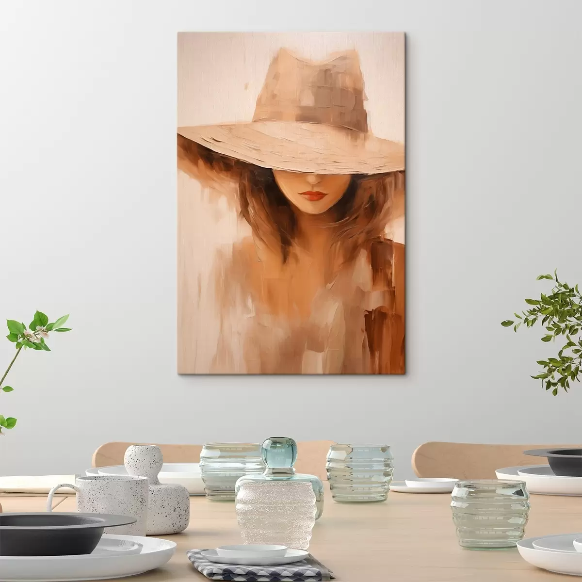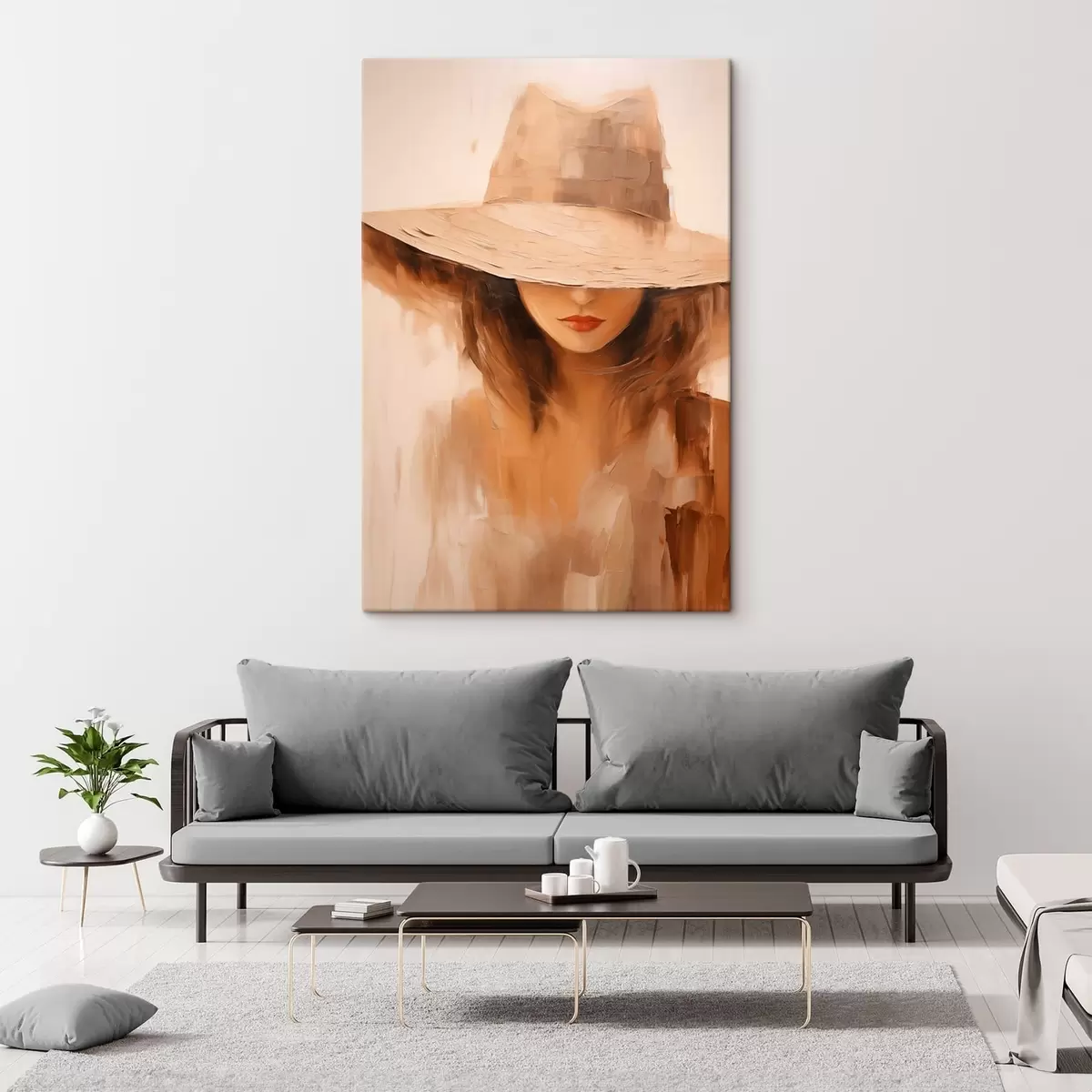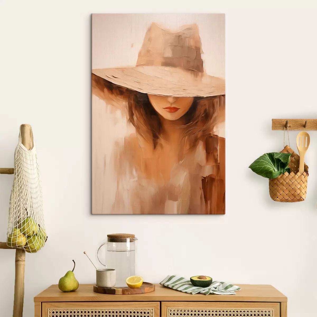 Maalid Naine mütsiga soojades abstraktsetes joontes Nr s47312