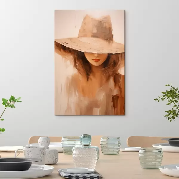Maalid Naine mütsiga soojades abstraktsetes joontes Nr s47312