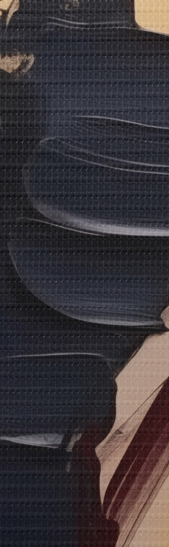 Selle lõuendi peenike niidipunus meenutab professionaalse kunstniku lõuendi pinda.