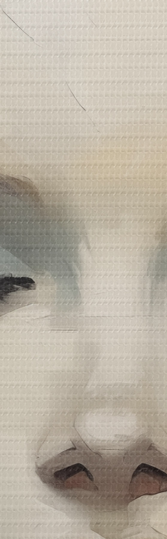 Selle lõuendi peenike niidipunus meenutab professionaalse kunstniku lõuendi pinda.
