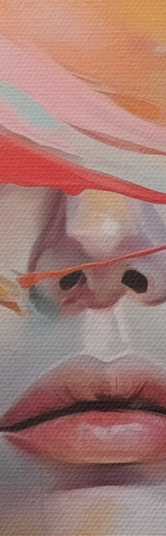 Selle lõuendi peenike niidipunus meenutab professionaalse kunstniku lõuendi pinda.
