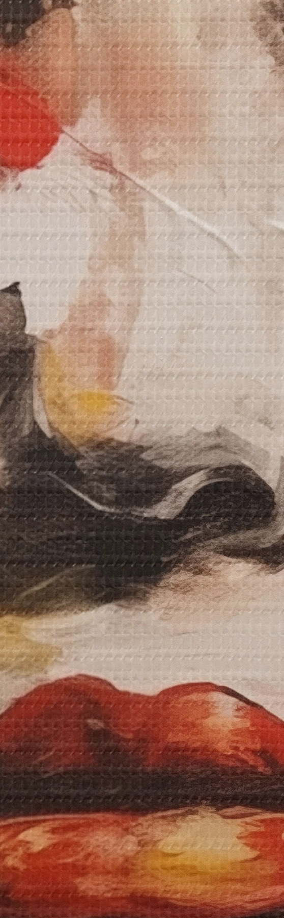 Selle lõuendi peenike niidipunus meenutab professionaalse kunstniku lõuendi pinda.