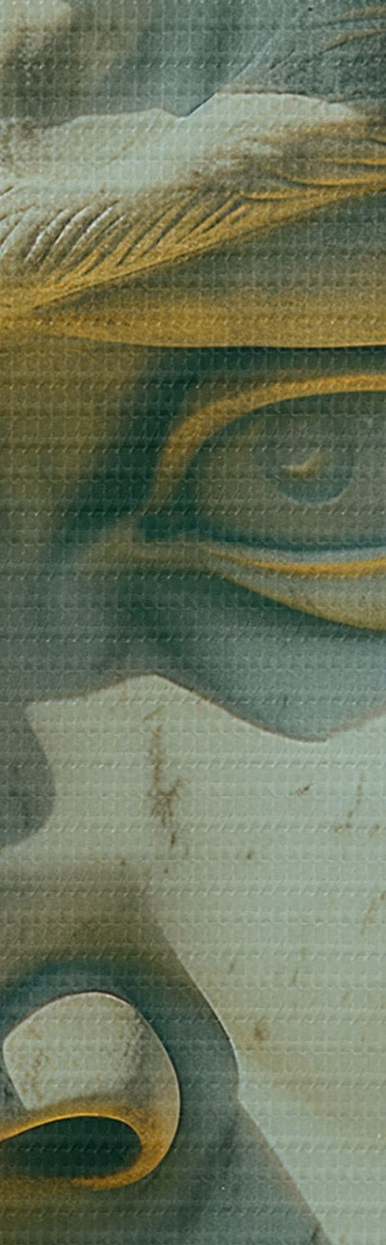 Selle lõuendi peenike niidipunus meenutab professionaalse kunstniku lõuendi pinda.