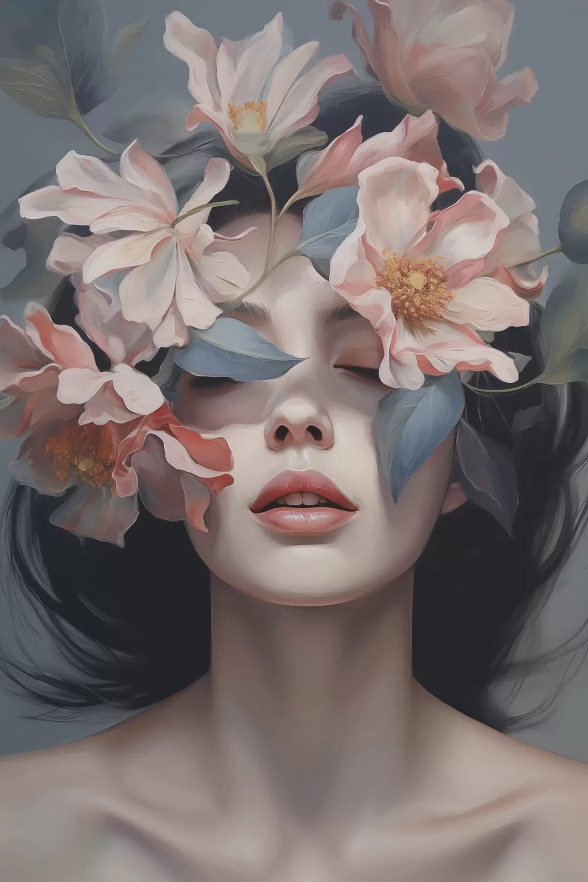 Maalid Abstraktne naiseportree lilledega Nr s47488