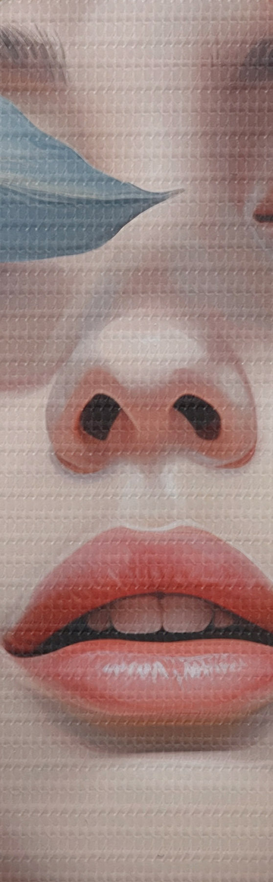 Selle lõuendi peenike niidipunus meenutab professionaalse kunstniku lõuendi pinda.