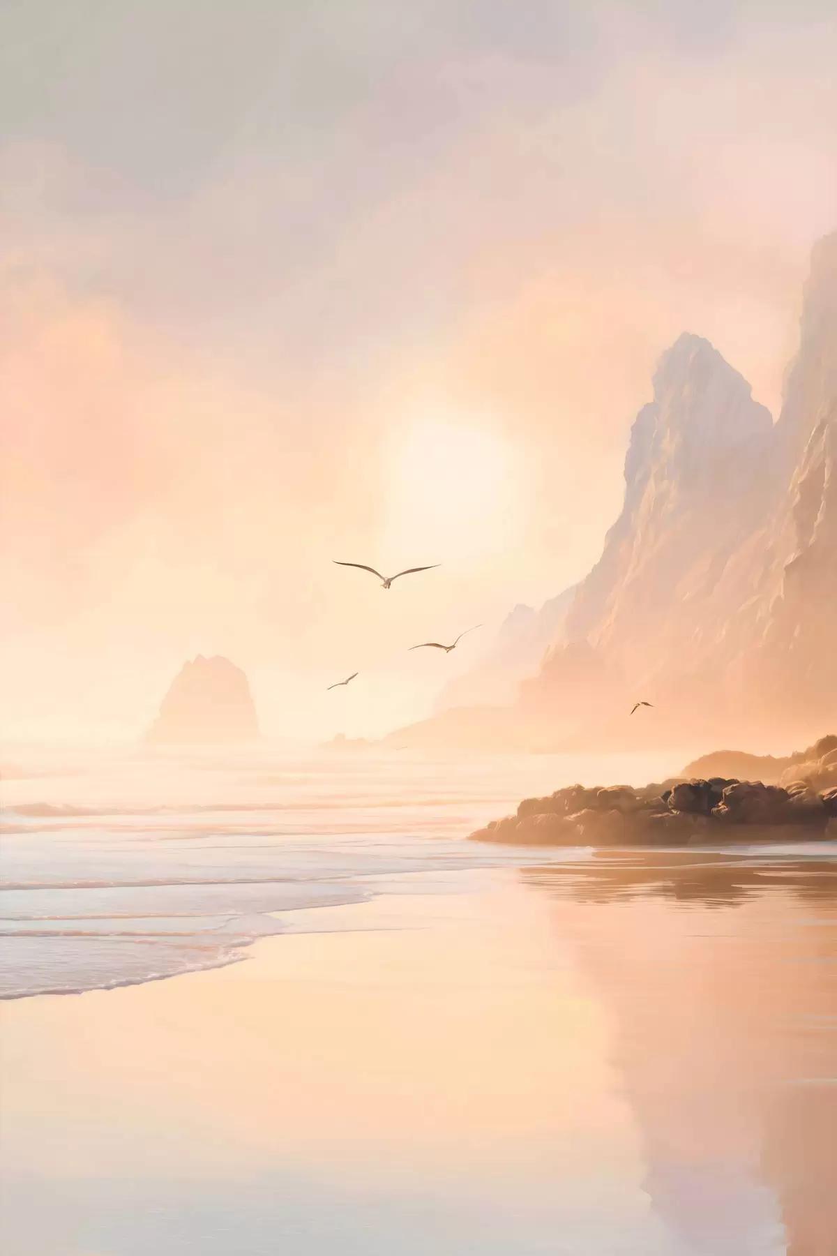 Maalid ookeani koidik mägedest taustal Nr s47690
