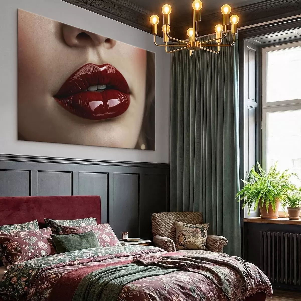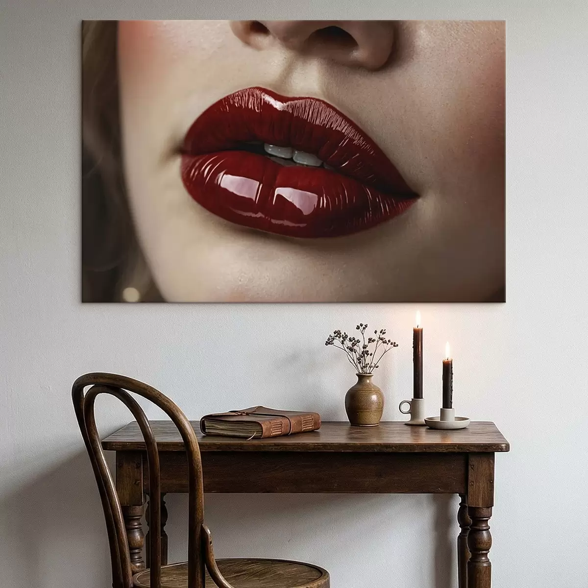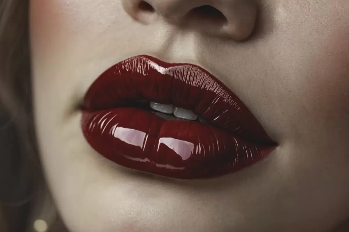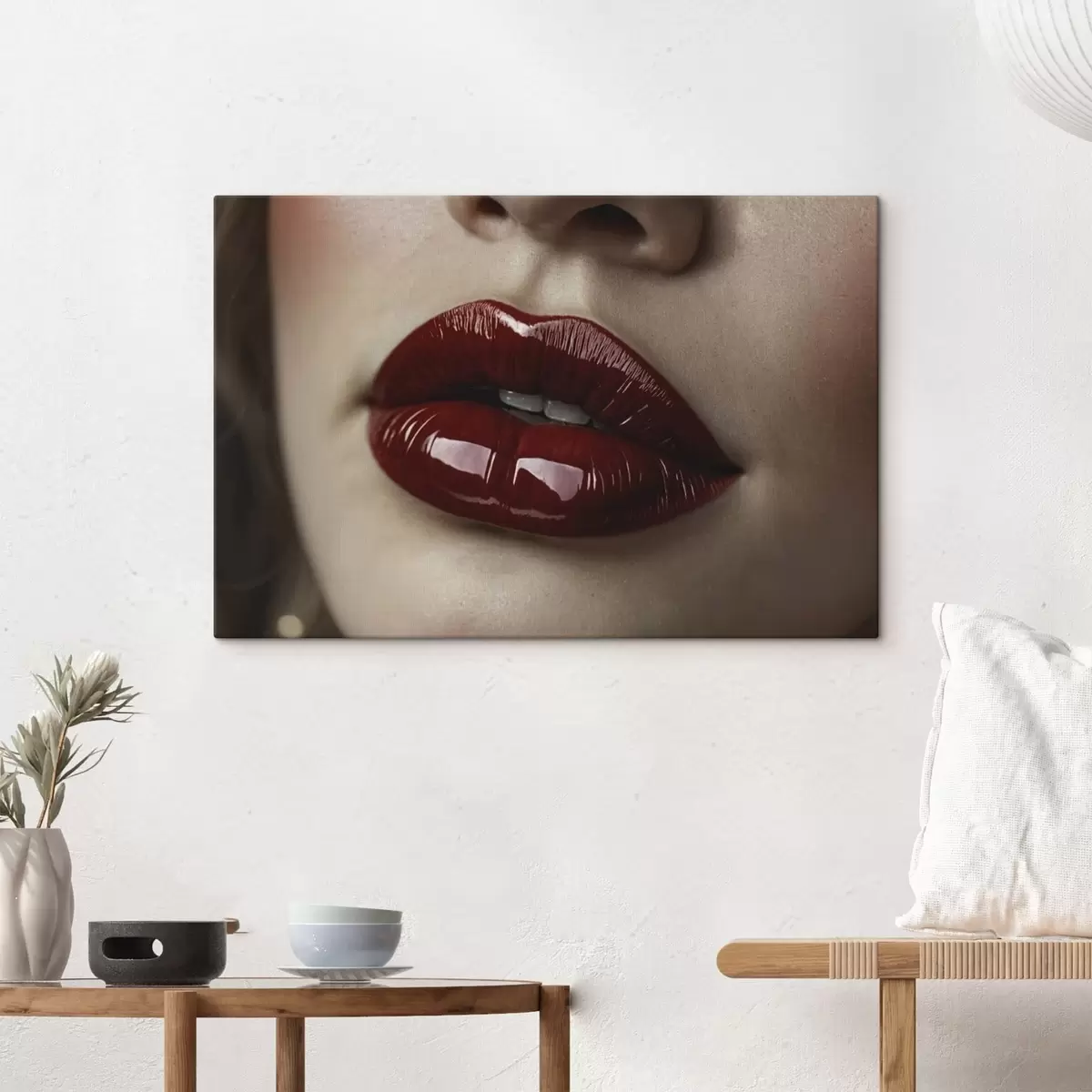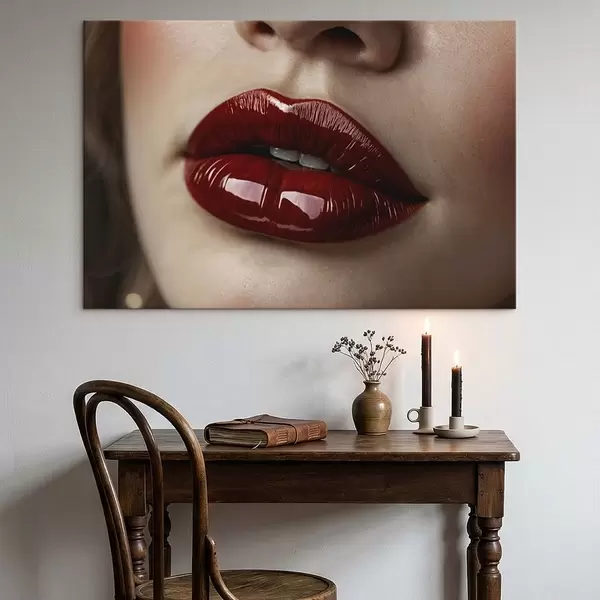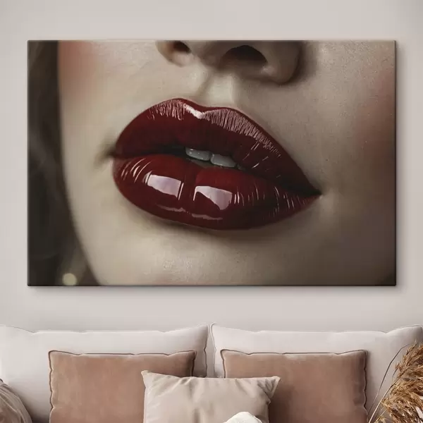 Maalid Väga lähedalt vaadeldud läikivad punased huuled Nr s47772