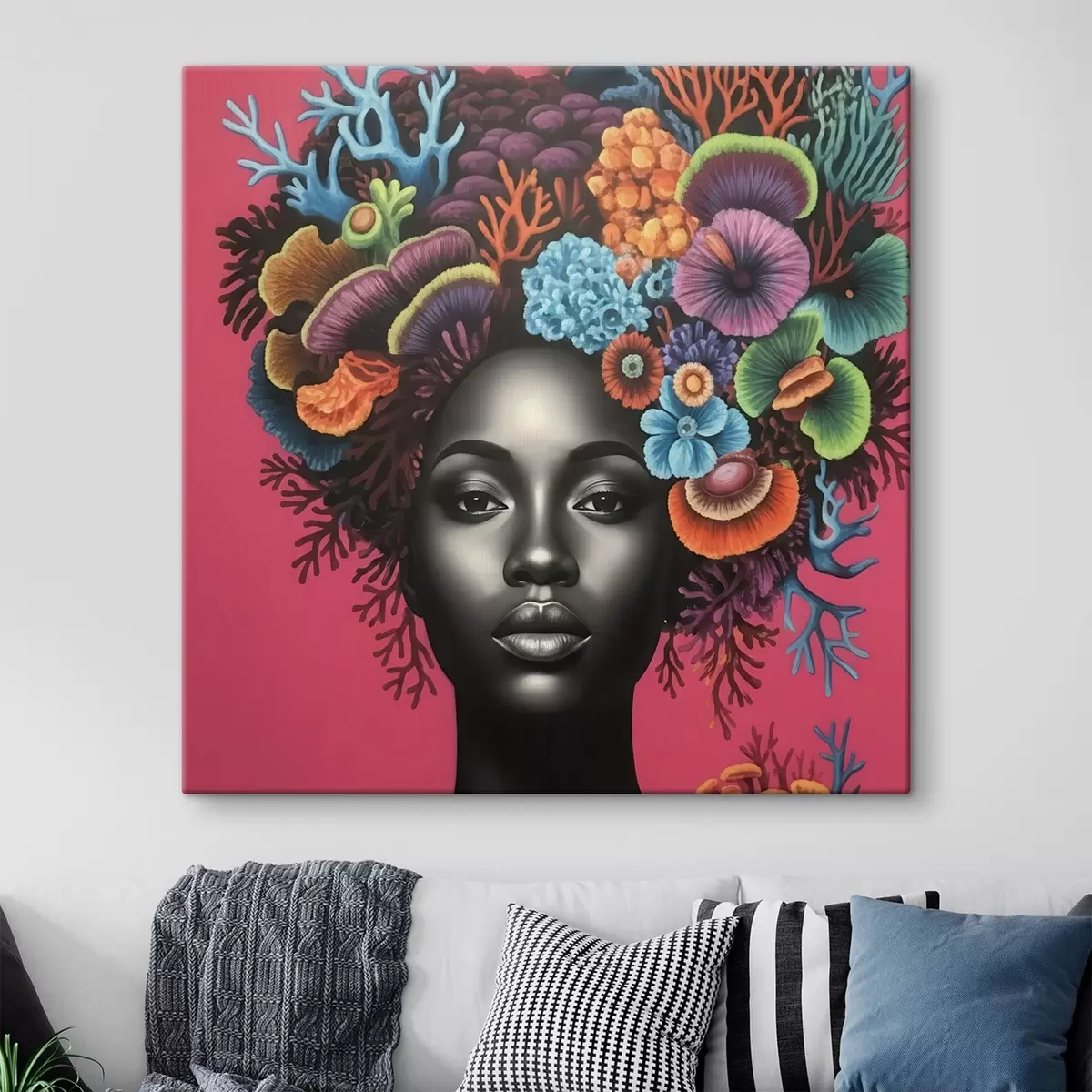 Maalid Psühhedeelne portree naisest seentega Nr s47786