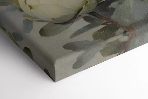 Maalid Maalistiil, milles on kujutatud mitu valget protea-lille suurete roheliste lehtedega heledal taustal. Nr s47861