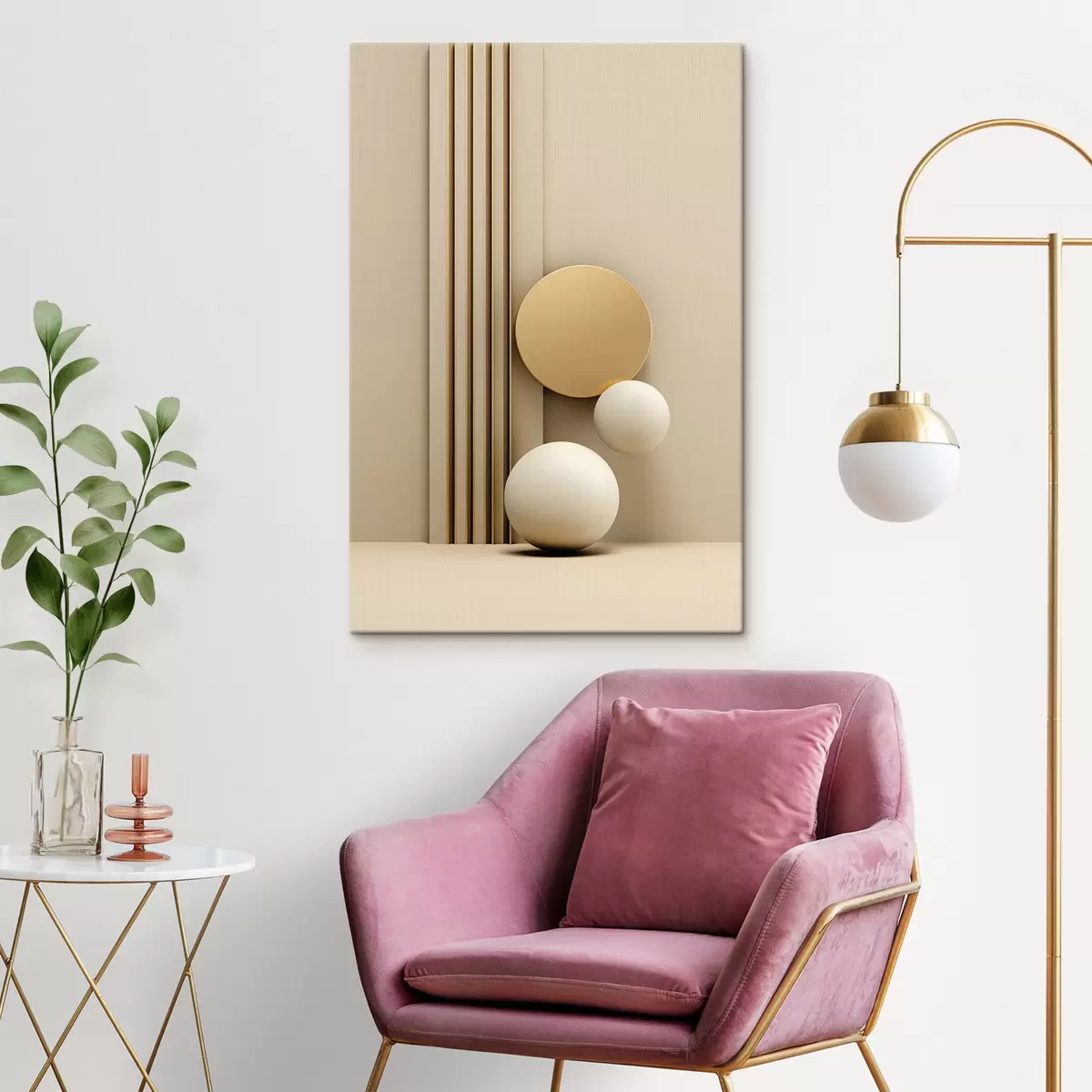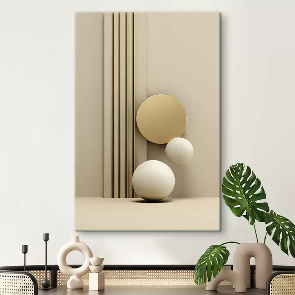 Maalid Abstraktne beež modernne kunst vertikaalsete joonte ja sfääridega Nr s47871