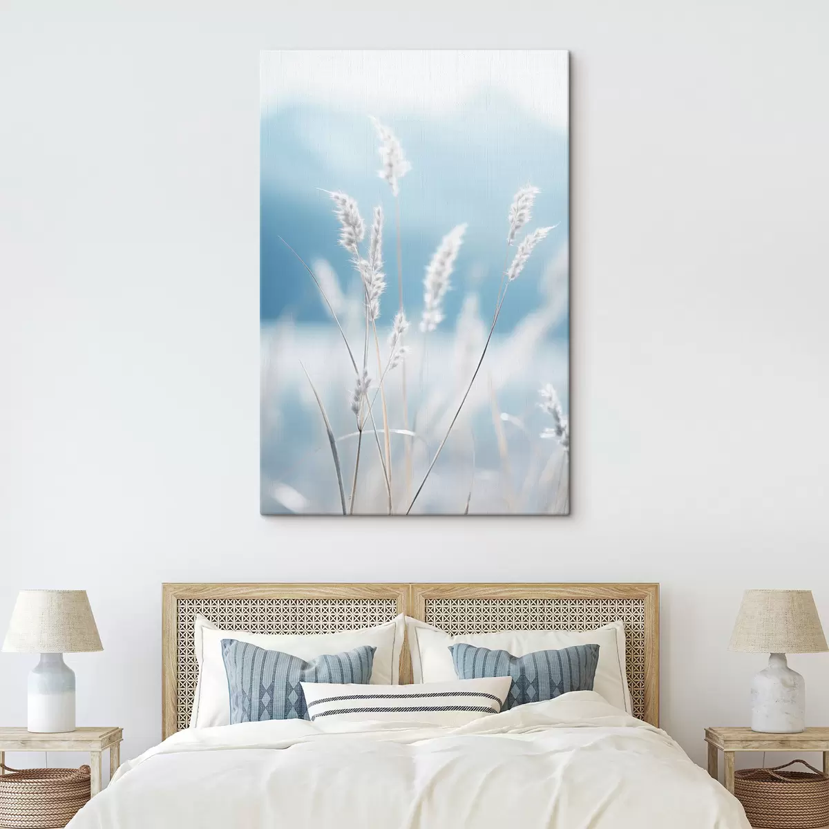 Maalid Valge kohev muru pehme sinise taeva taustal, madala teravussügavusega Nr s47880
