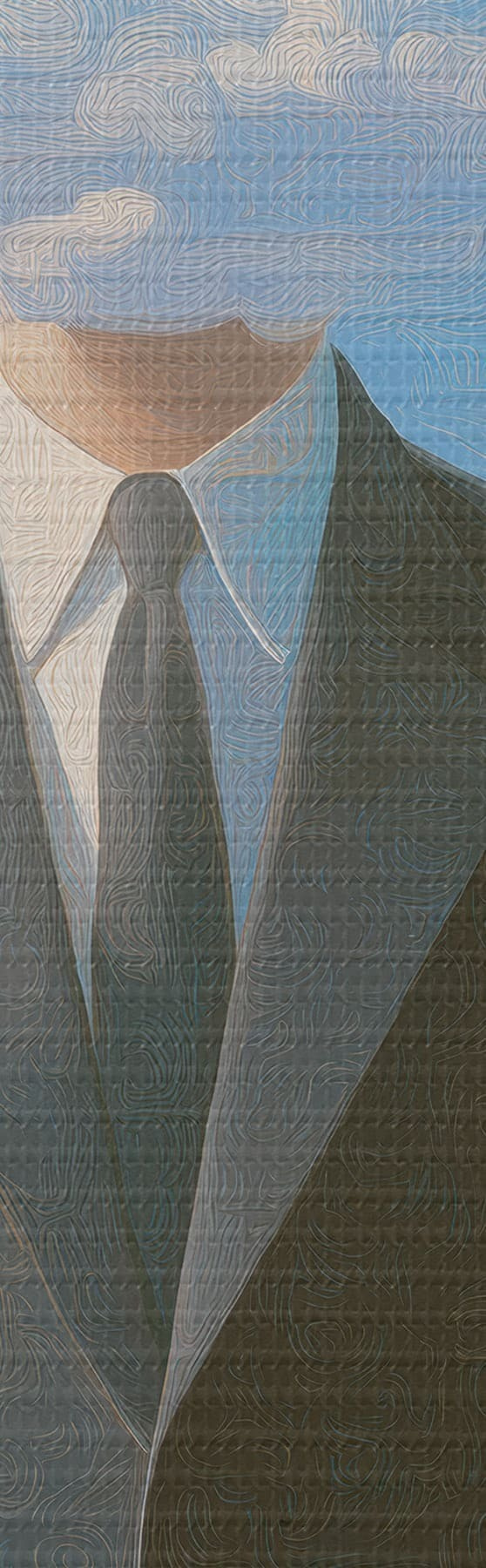Selle lõuendi peenike niidipunus meenutab professionaalse kunstniku lõuendi pinda.