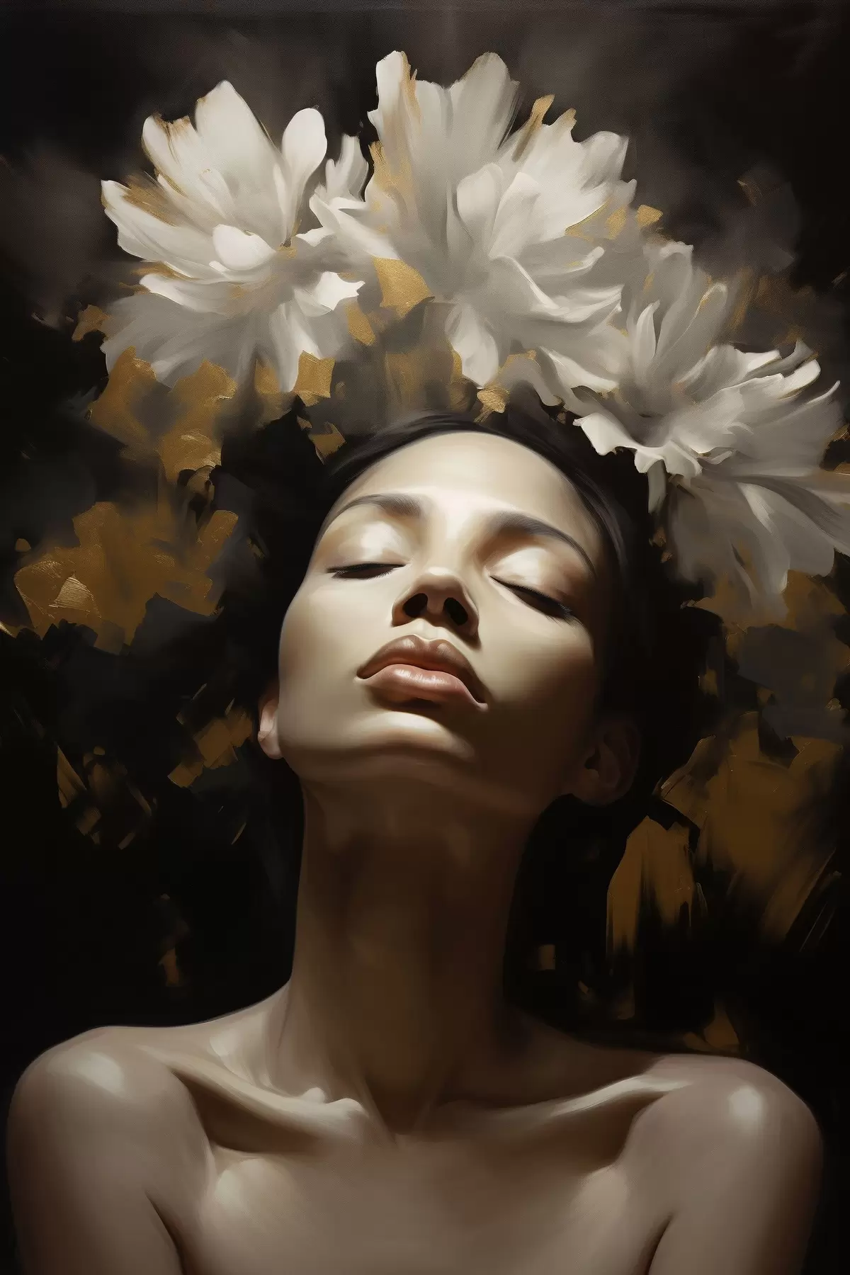 Maalid Naise portree valgete lilledega Nr s47918