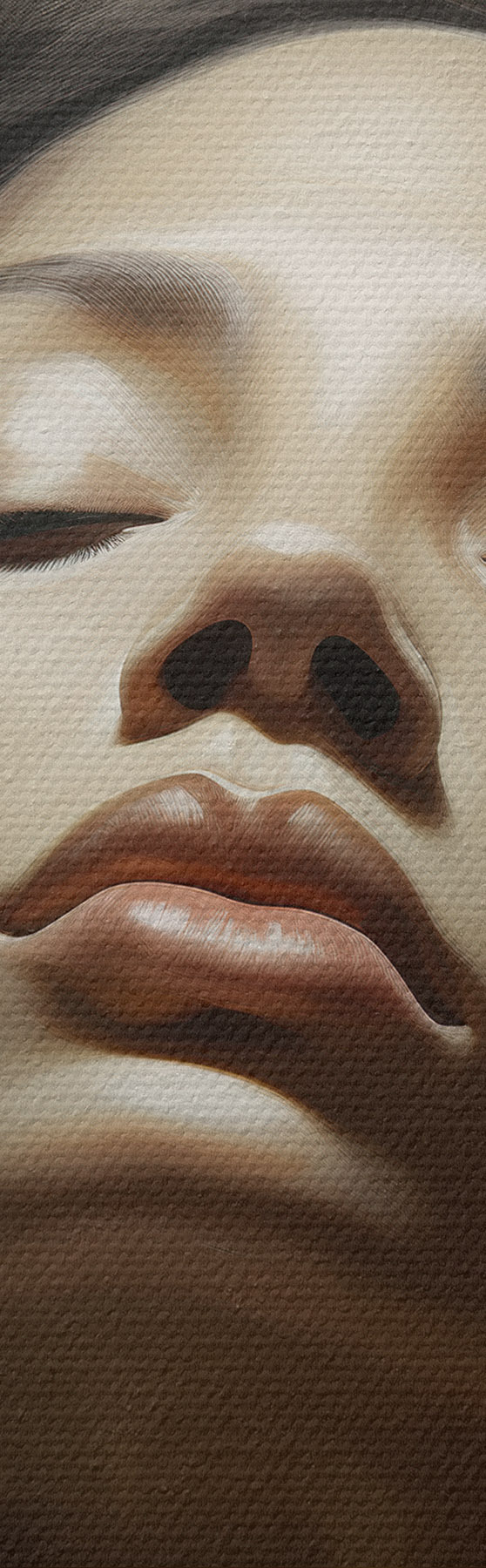 Selle lõuendi peenike niidipunus meenutab professionaalse kunstniku lõuendi pinda.